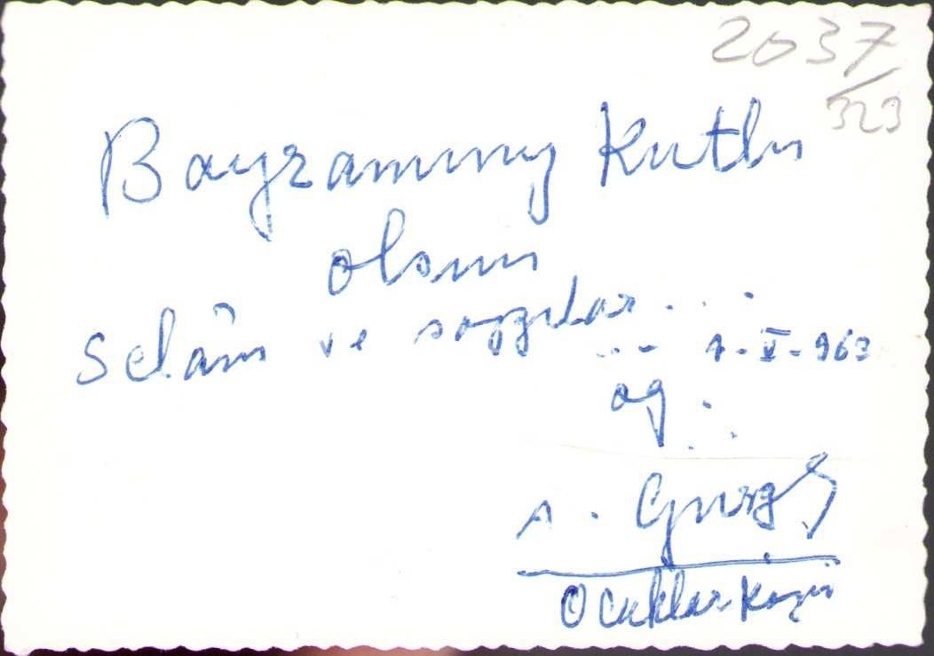 Erdek görselli bayram tebriği, 1963 tarihli, 6x9 cm