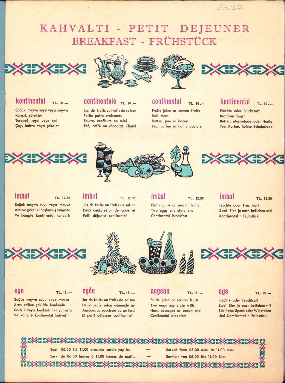 Büyük Efes Oteli oda servisi menüsü, 24x33 cm, yıpranmış haliyle