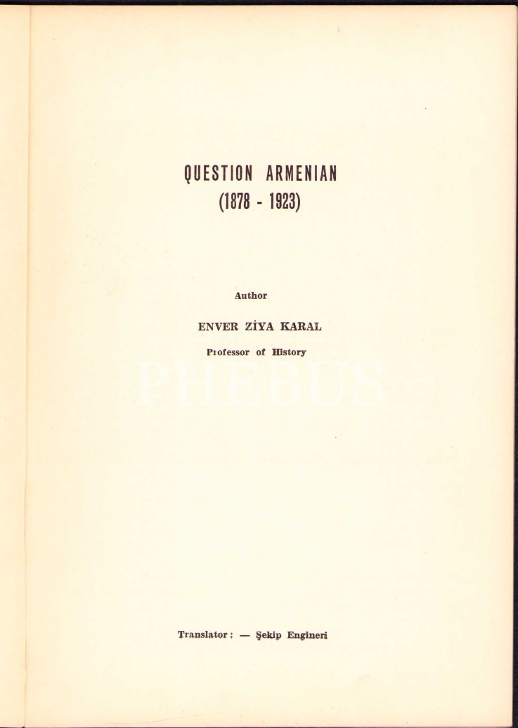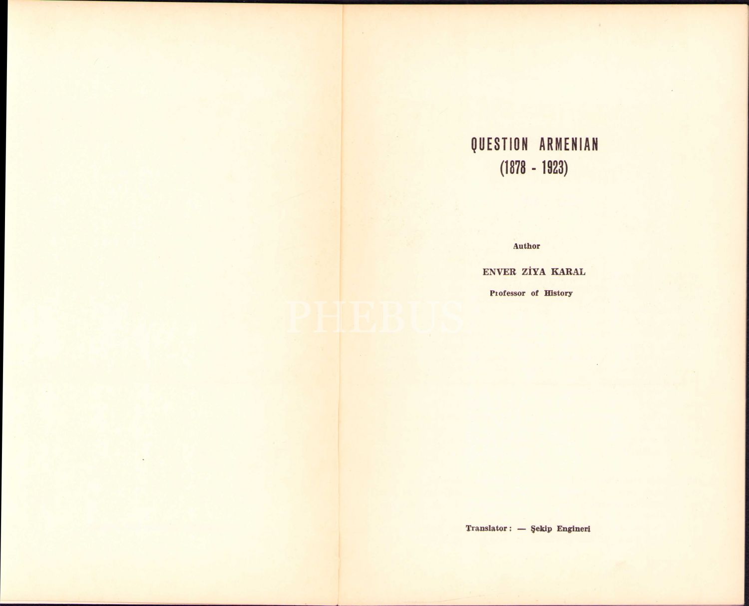 İngilizce Question Armenian (1878-1923), Enver Ziya Karal, çev. Şekip Engineri, 27 s., 16x23 cm