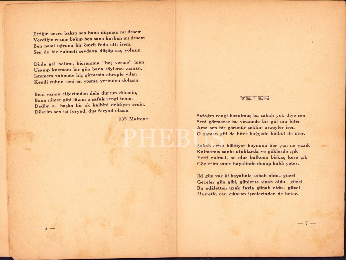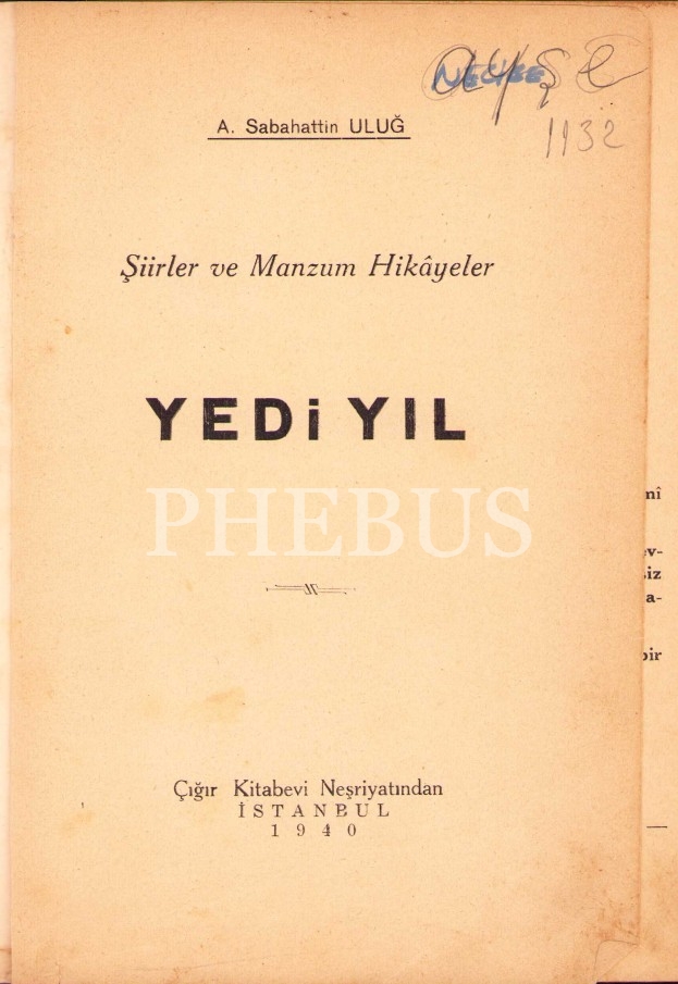 Yedi Yıl, A. Sabahattin Uluğ, Çığır Kitabevi, İstanbul 1940, 48 s., 14x19 cm, kapağı epey yıpranmış haliyle