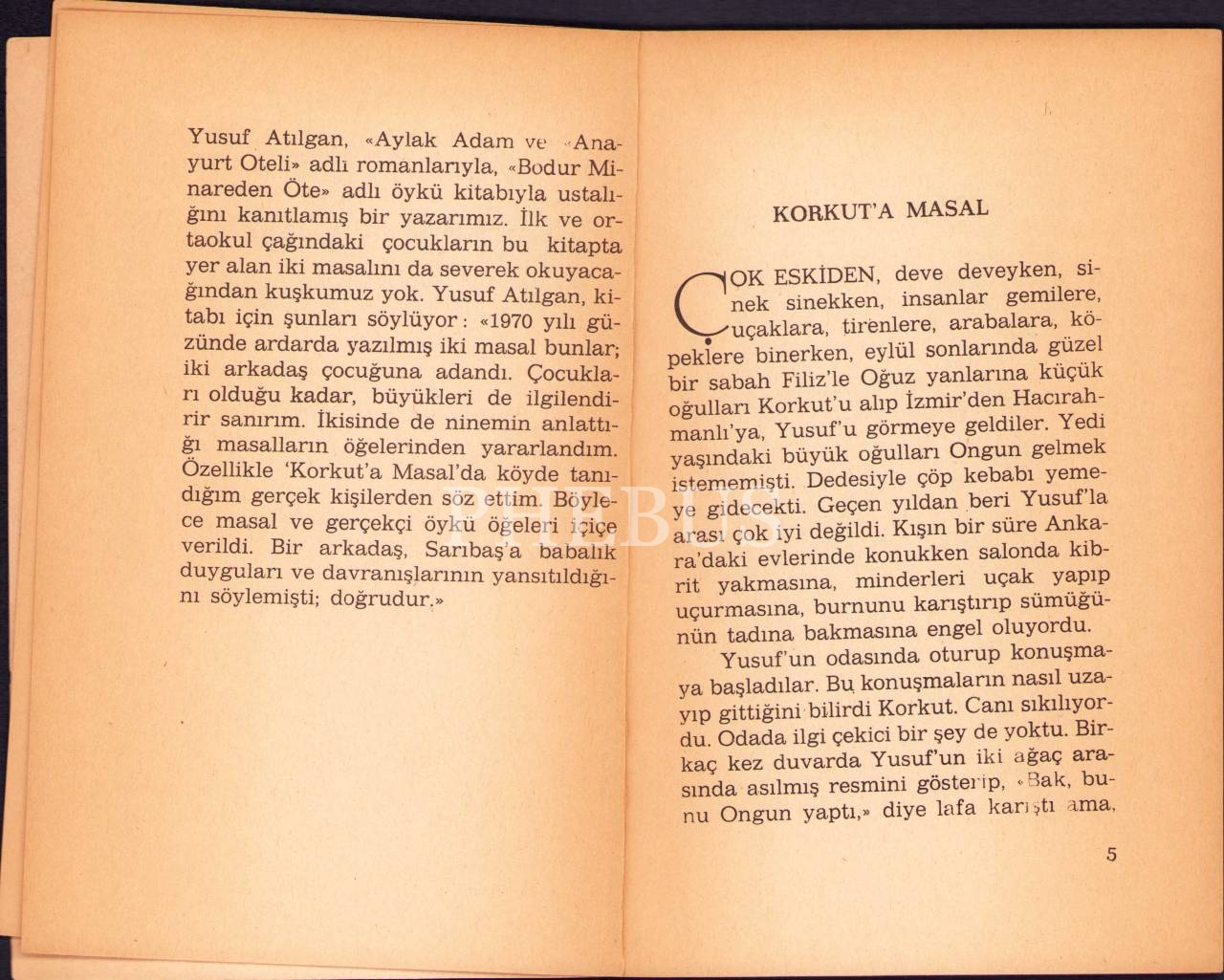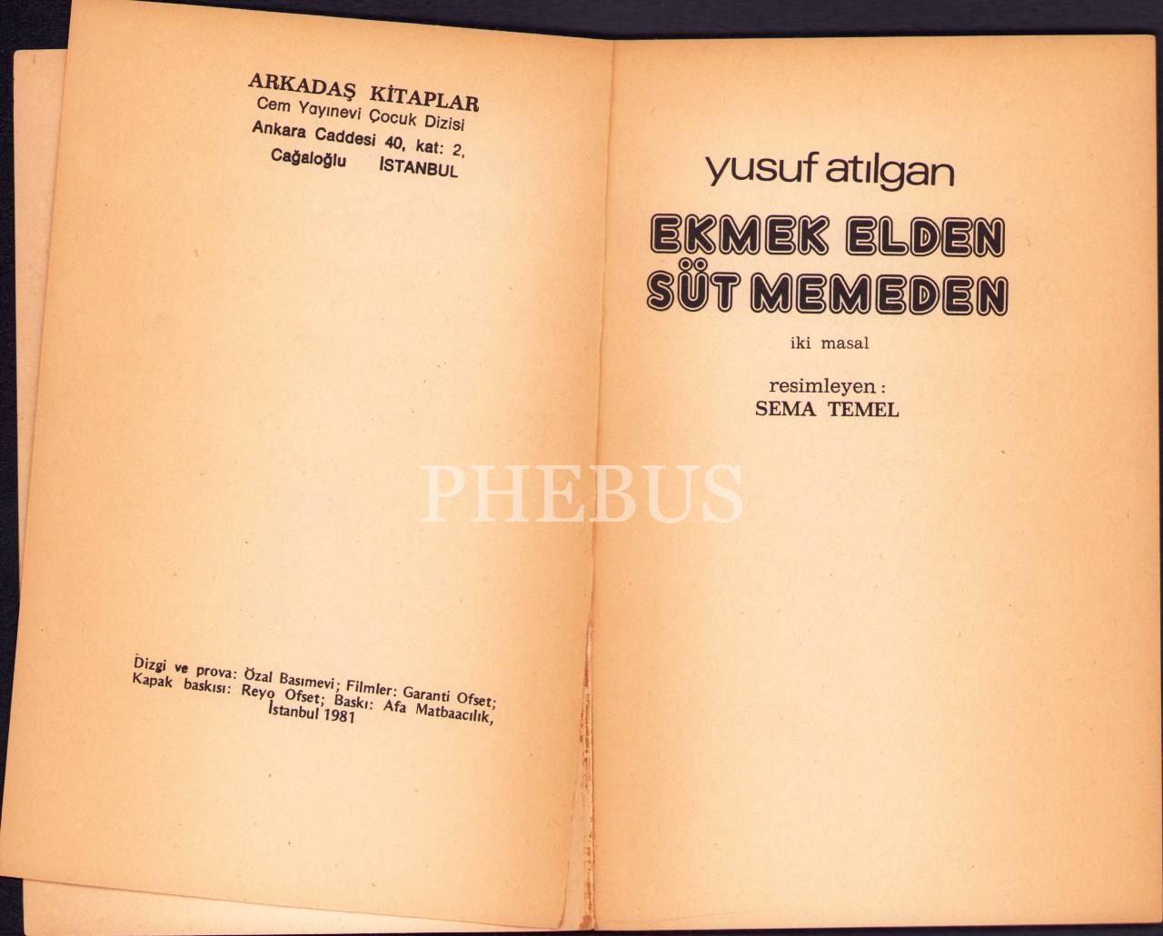 Ekmek Elden Süt Memeden, Yusuf Atılgan, Cem Yayınevi Çocuk Dizisi, İstanbul 1981, 67 s., 13x19 cm, künye sayfası alttan kopuk haliyle