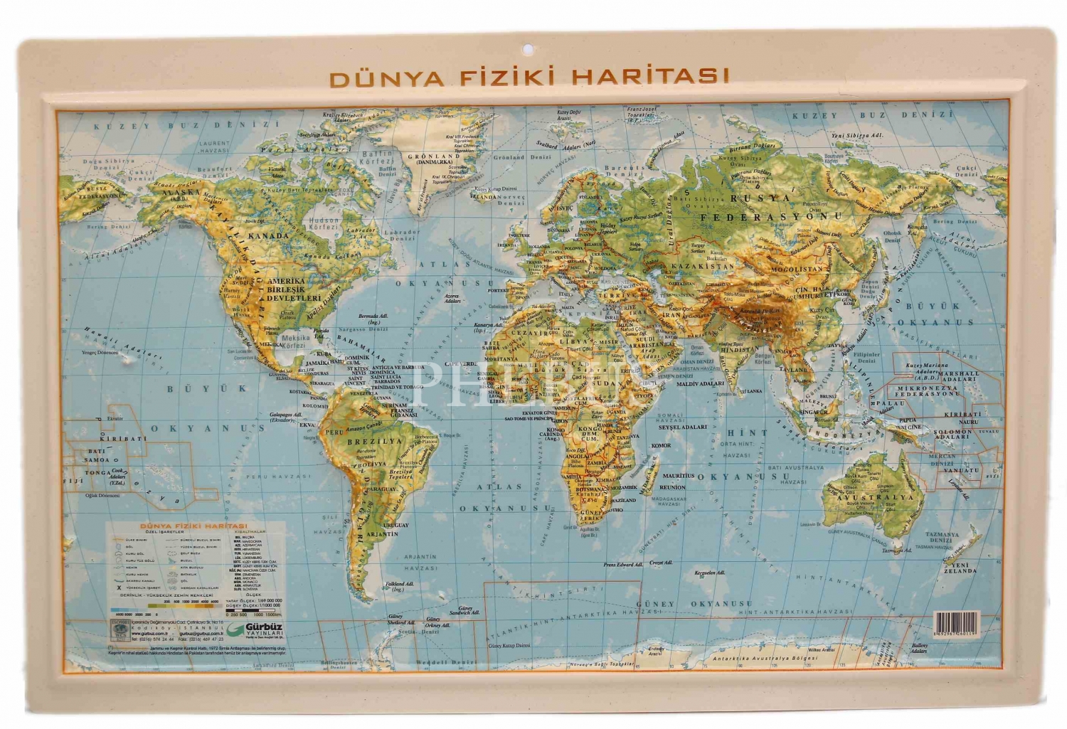 Kabartmalı Dünya Fiziki Haritası, 16 adet, Gürbüz Yayınları, 29x44 cm, bazıları kenardan yırtık haliyle