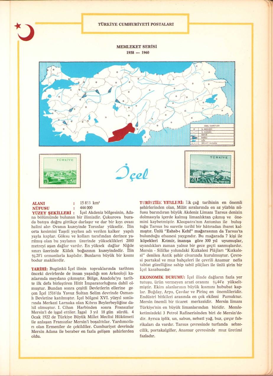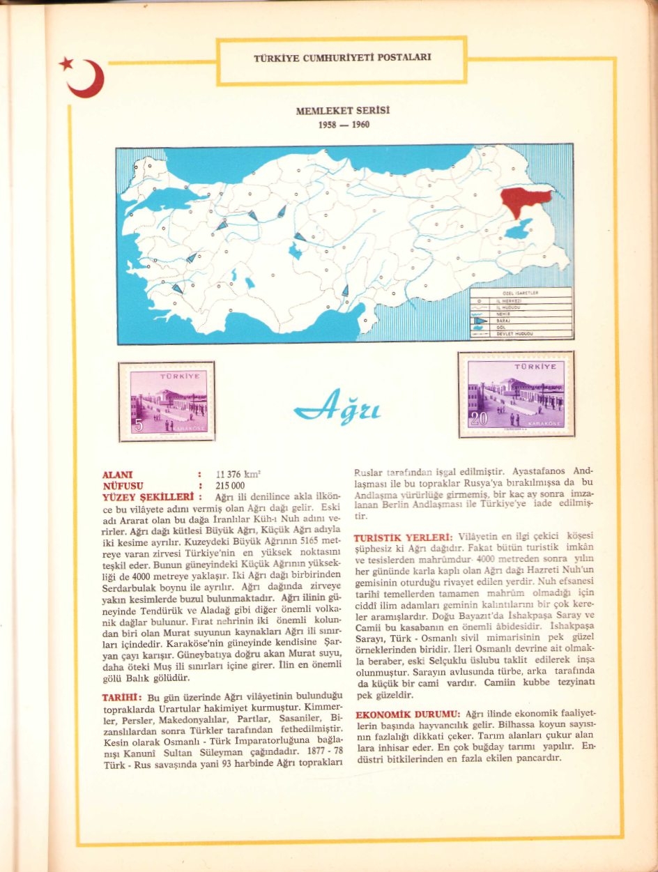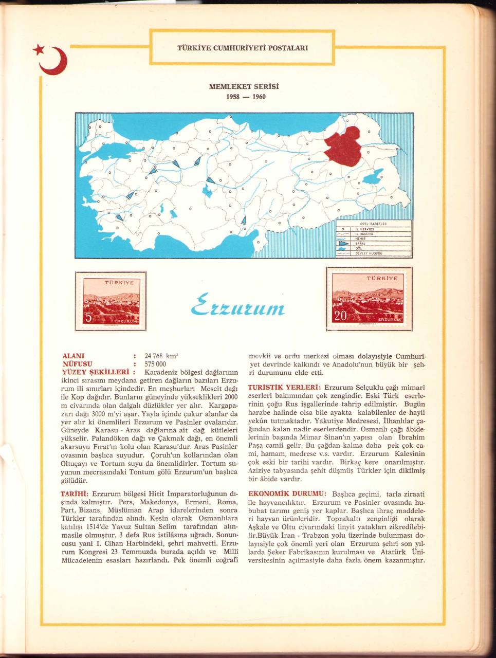 "T.C. Posta İdaresinin 1958-1960 yılları arasında çıkardığı "Büyük Memleket Serisi" isimli pul serisini ihtiva eden bu albüm hem Türkiye hakkında geniş bilgi vermek ve hem de filâtelistik bakımdan olmak üzere hazırlanmıştır."