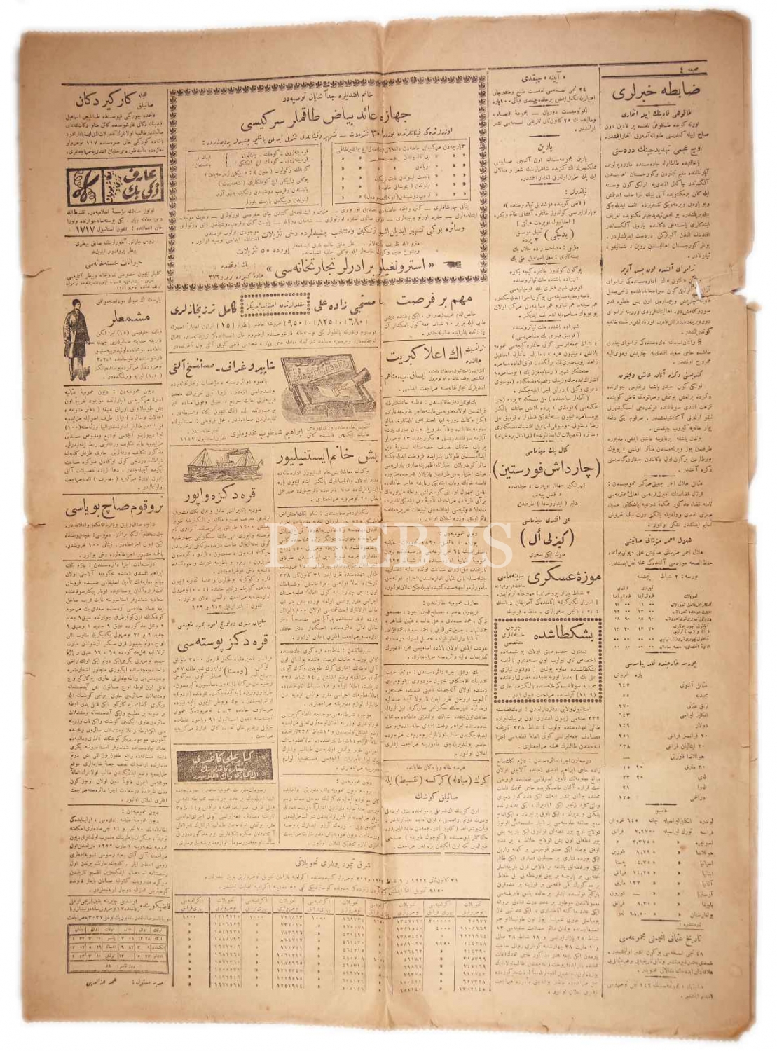 Osmanlıca İkdam gazetesi, 3 Şubat 1922, 4 sayfa, 43x60 cm