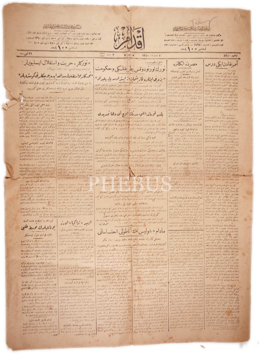 "Müstahberât-ı Mahsûsamız: Türk Ortodoks Patrikliği ve Hükümet: Biz dinî işlere karışmayız; ne isterlese yapabilirler"; "Amerika'dan İki Ders"; "Mısır'da İngiltere", "Türkler Hürriyet ve İstiklâl İstiyorlar" vb. başlıklı yazılar içermektedir.