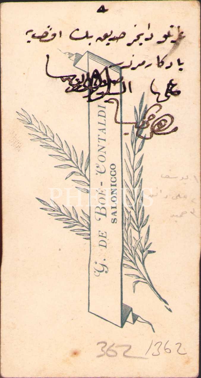Osmanlı döneminden "Dostluk Hatırı", G. De Boe-Contaldı-Salonicco, Osmanlıca ithaflı, 5x11 cm