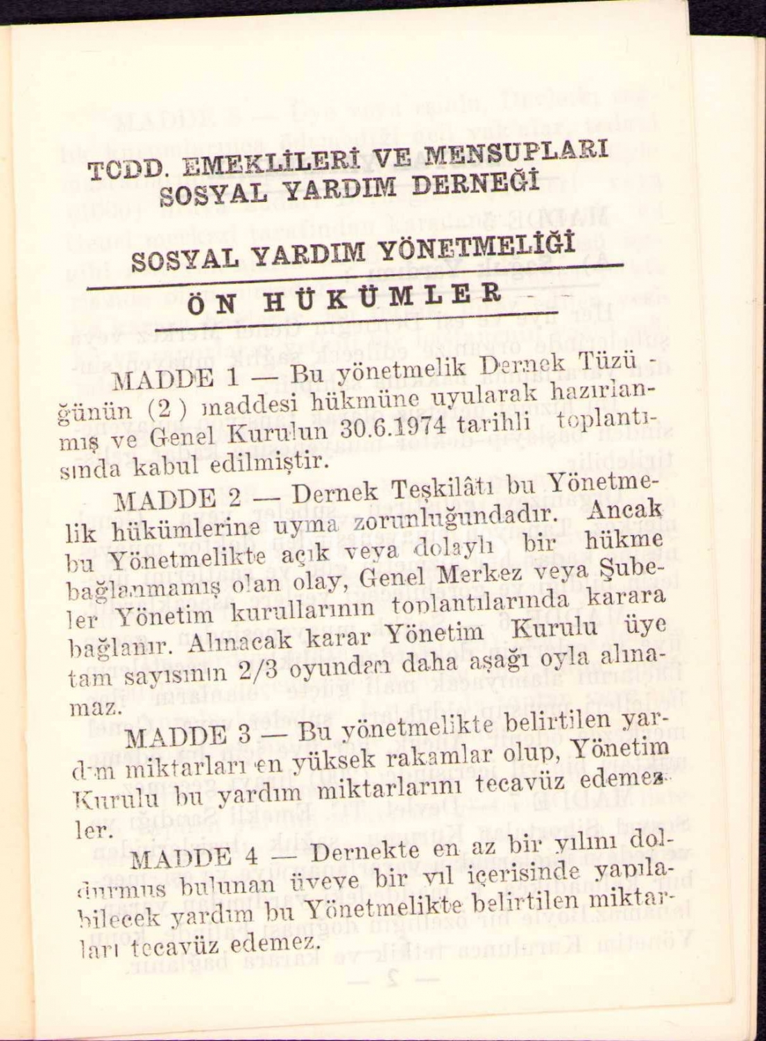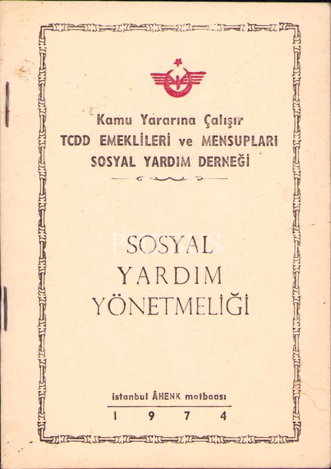 TCDD Emeklileri ve Mensupları Sosyal Yardım Derneği Yönetmeliği, İstanbul 1974, 8 sayfa, 10x13 cm