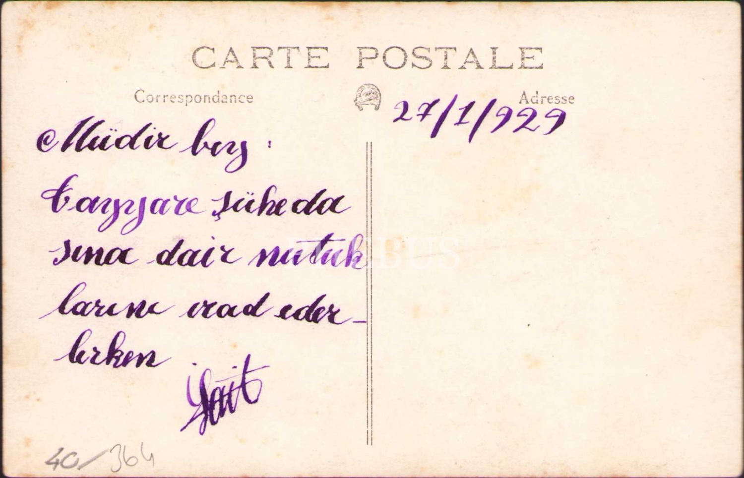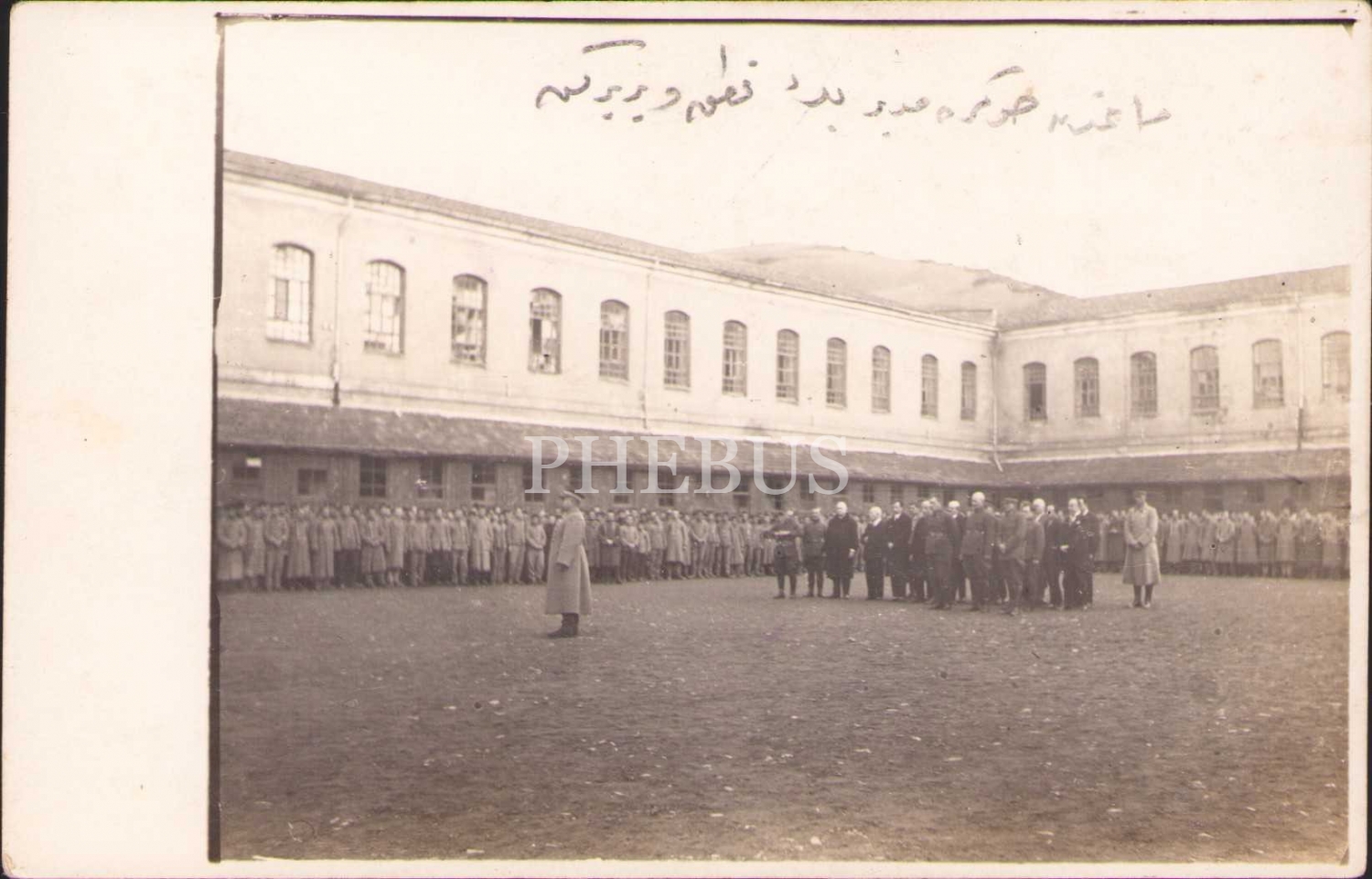 Askerî okul müdürü nutuk verirken, 1929 tarihli, arkası Osmanlıca yazılı