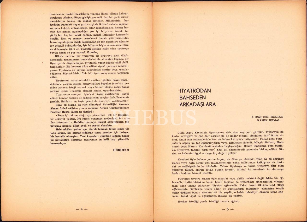 Türk Tiyatro dergisi Namık Kemal eki, Belediye Matbaası, 24 sayfa, 17x24 cm
