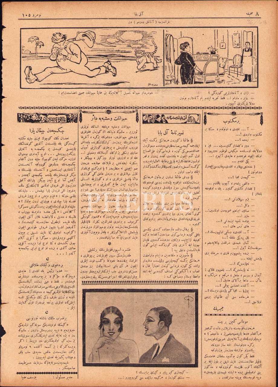 Osmanlıca Akbaba gazetesi, 6 Kanunuevvel 1339, 8 sayfa, 27x38 cm, ciltten çıkma ve bir kenarı yıpranmış haliyle
