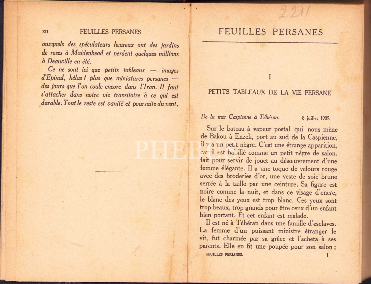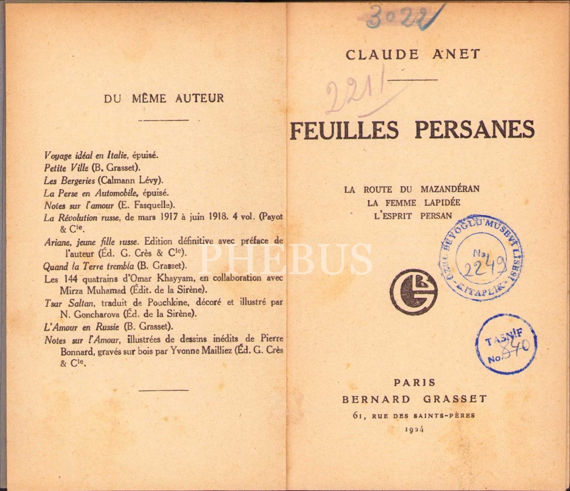 Fransızca Feuilles Persanes, Claude Anet, Paris 1924, 275 s., 12x18 cm