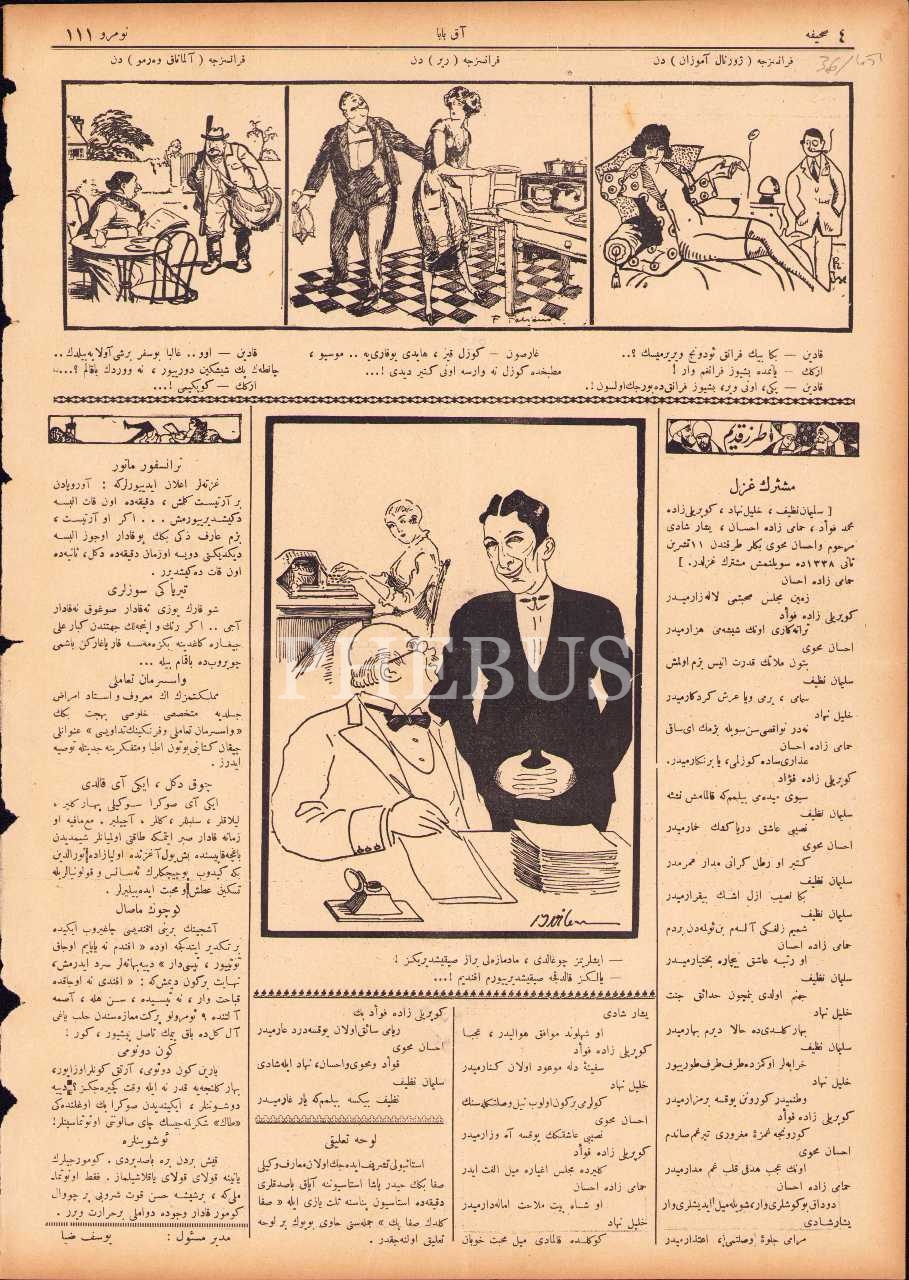 "Makam-ı Hilafet Musikî Heyeti Orkestrası ve sâmi'ler" *Türkiye'nin en uzun ömürlü mizah dergilerinden olan Akbaba, 1922 yılında Yusuf Ziya Ortaç ve Orhan Seyfi Orhon tarafından kurulmuş ve kesintilerle birlikte 1977'ye kadar yayın hayatını sürdürmüştür. Zaman içerisinde de toplumun yoksul kesiminin dergisi olarak geniş bir okuyucu kitlesine ulaşmıştır.