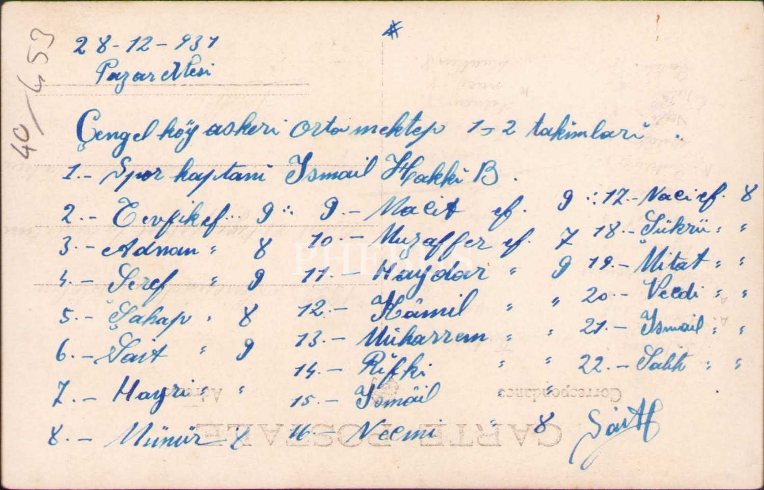 Çengelköy Askeri Ortaokulu futbol takımı, 1931, arkası yazılı
