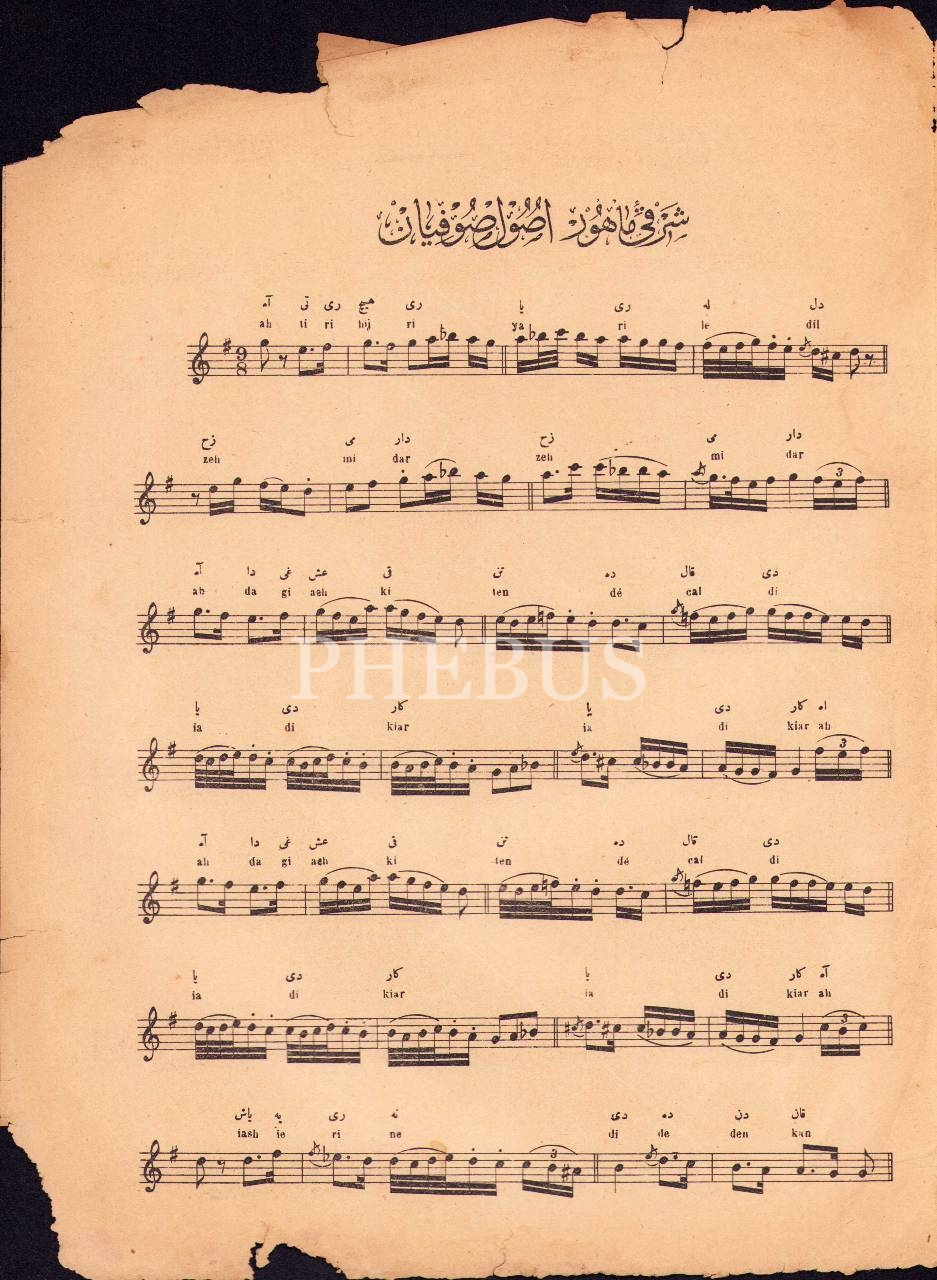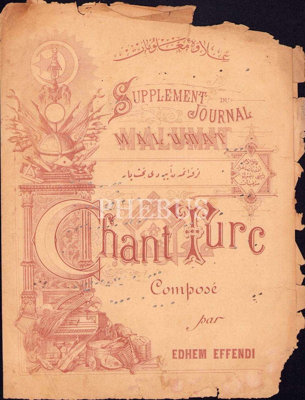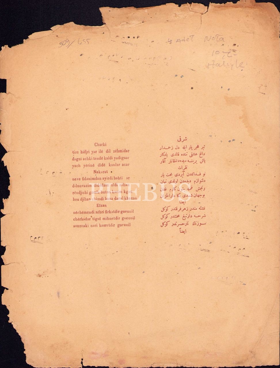 Malumat dergisinin eki olarak Osmanlıca nota, Edhem Efendi'nin mahur şarkısı, 24x32 cm, epey yıpranmış haliyle