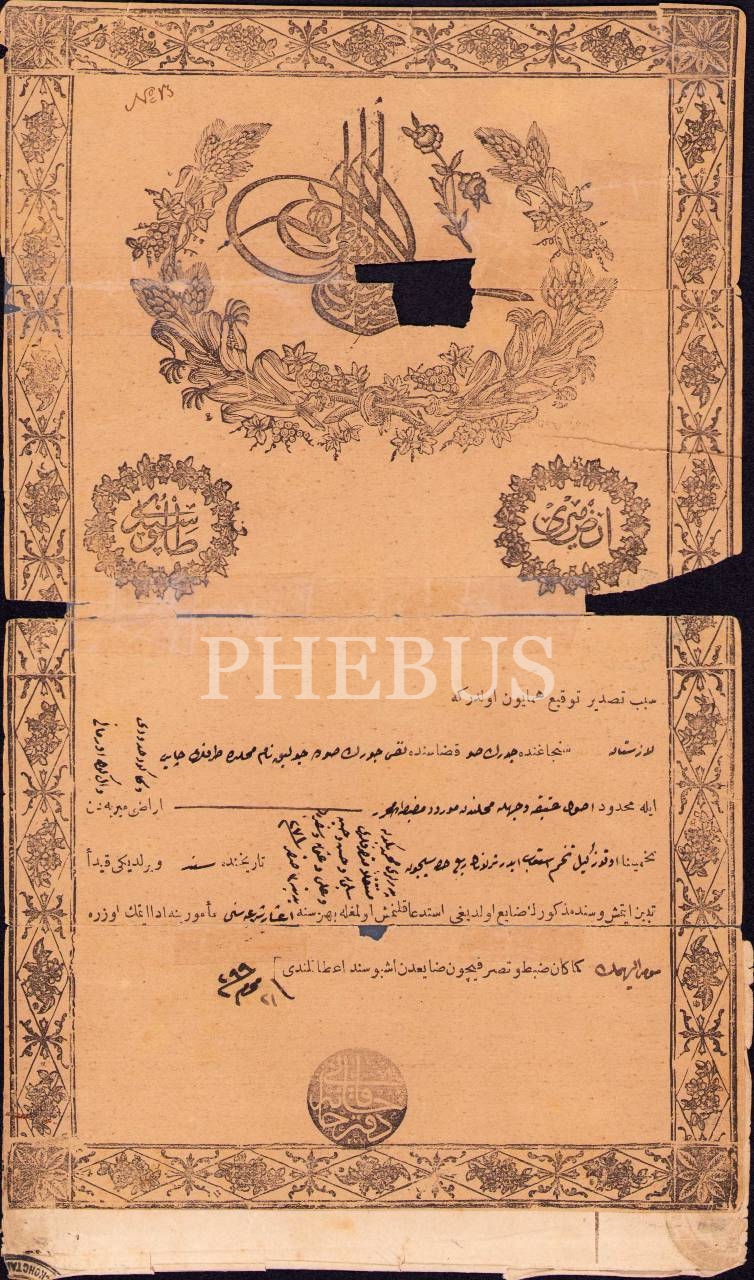 Osmanlıca tarla tapu senedi, Lazistan Sancağı, 1299 tarihli, 18x31 cm, epey yıpranmış haliyle