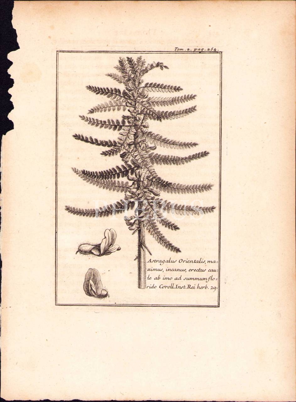 Astragalus bitkisi gravürü, kitaptan çıkma, 18x25 cm, bir kenarı yıpranmış haliyle