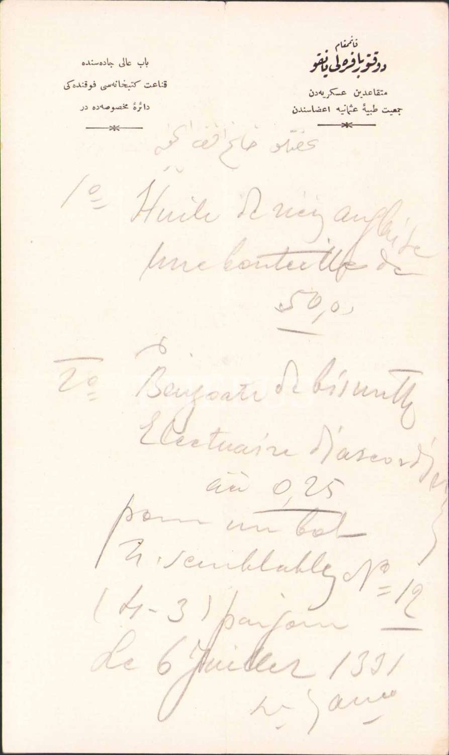 Osmanlıca Kaimmakam Doktor Bafralı Yanko antetli reçete, 12x20 cm
