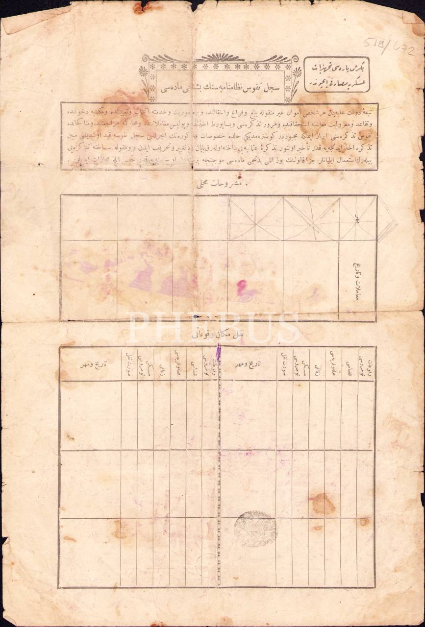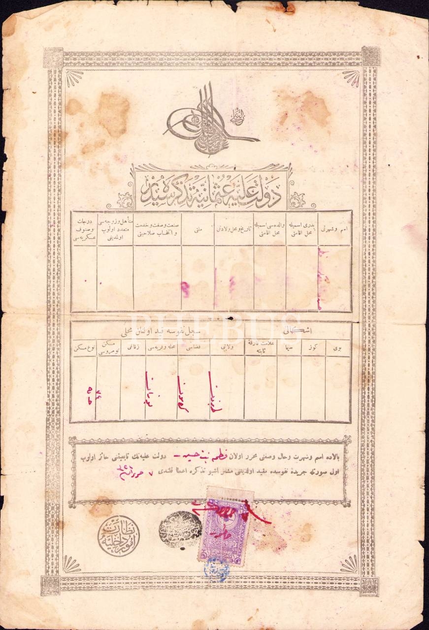 Osmanlıca 1321 tarihli nüfus tezkiresi, 24x35 cm, epey yıpranmış ve sudan ötürü yazılarının bir kısmı silinmiş haliyle