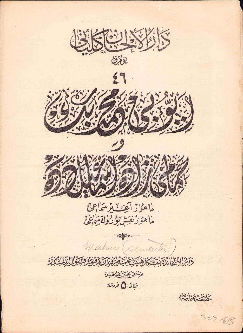 Dârü'l-Elhân Külliyâtı'ndan Osmanlıca nota, Dede Efendi ve Eyyubi Mehmed Bey'e ait mahur semailer, 25x34 cm