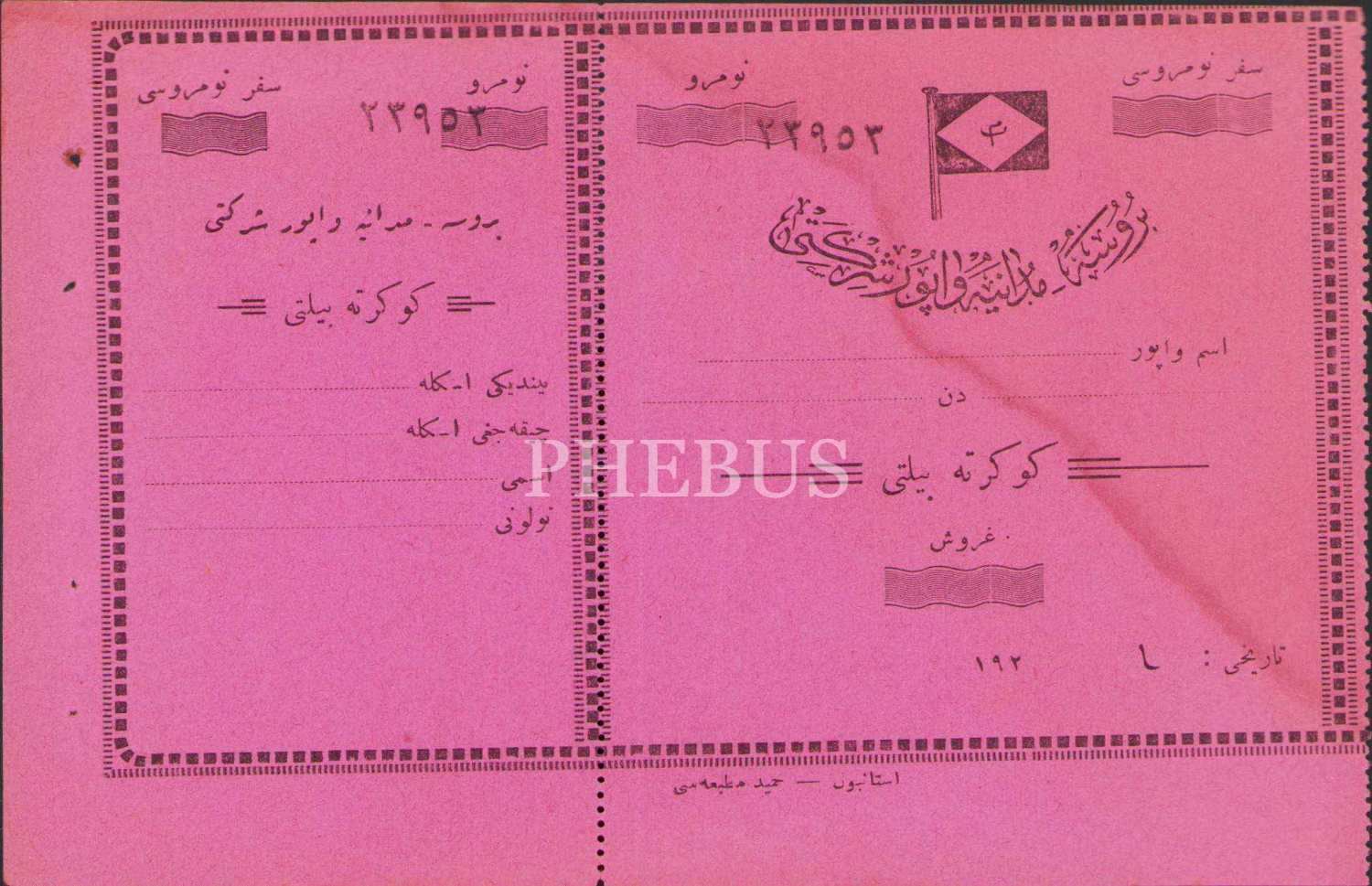 Osmanlıca Bursa-Mudanya Vapur Şirketi boş bileti, 11x17 cm