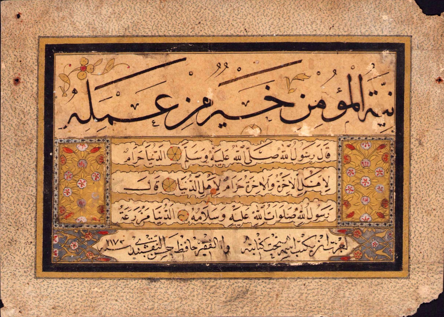 Sülüs nesih icazet, icazeti veren Hafız Hasan Nakşibendi, hicri 1172, 20x14cm