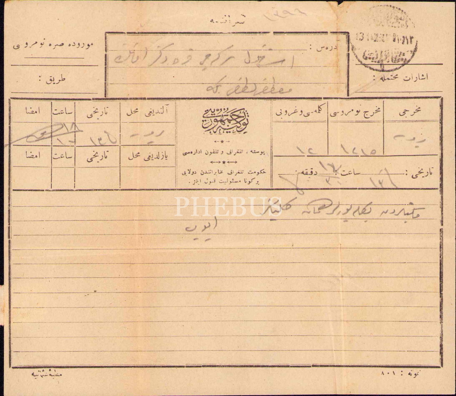 Osmanlıca telgrafname, 16x18 cm