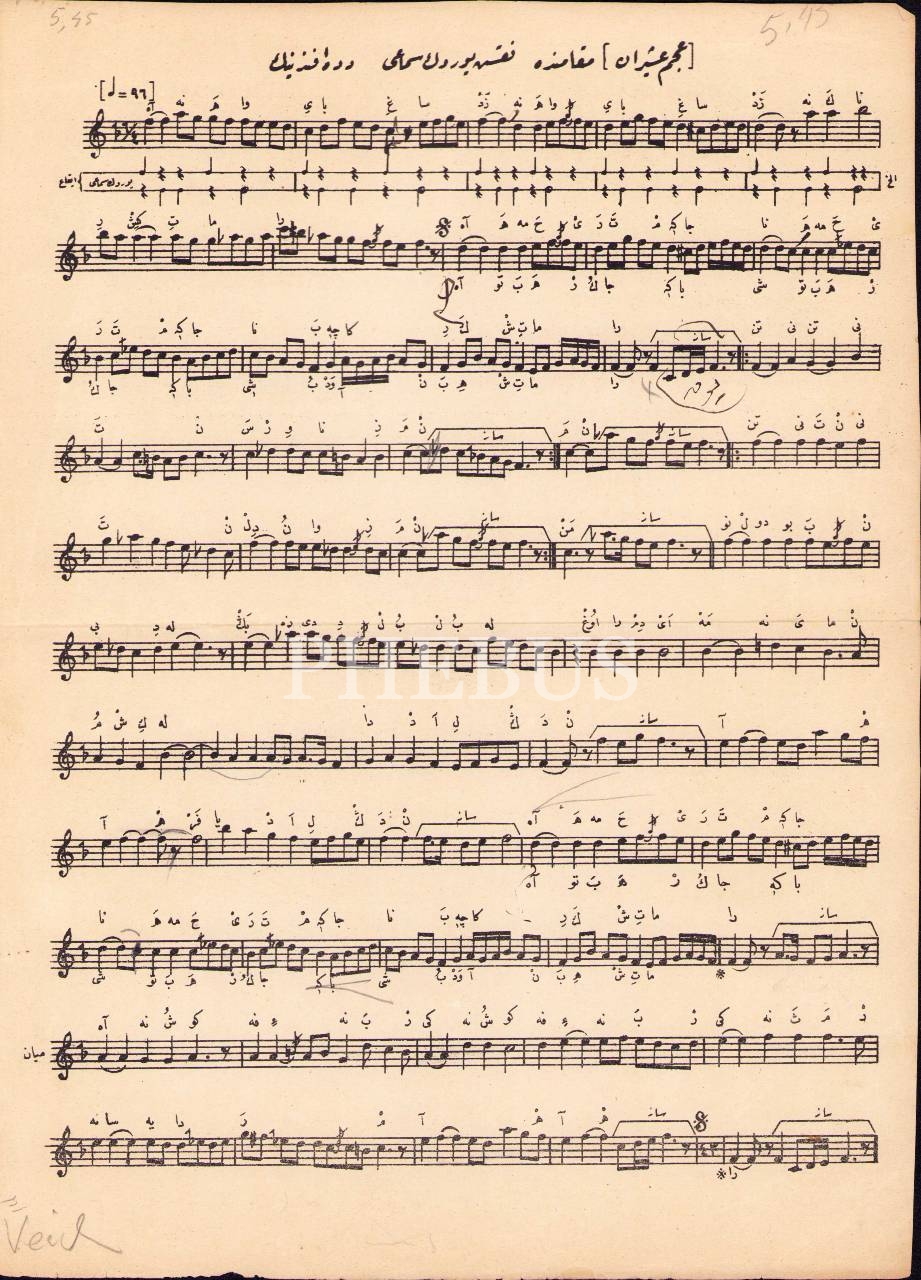 Dârü'l-Elhân Külliyâtı'ndan Osmanlıca nota, Dede Efendi'ye ait acem-aşiran semailer, 24x32 cm