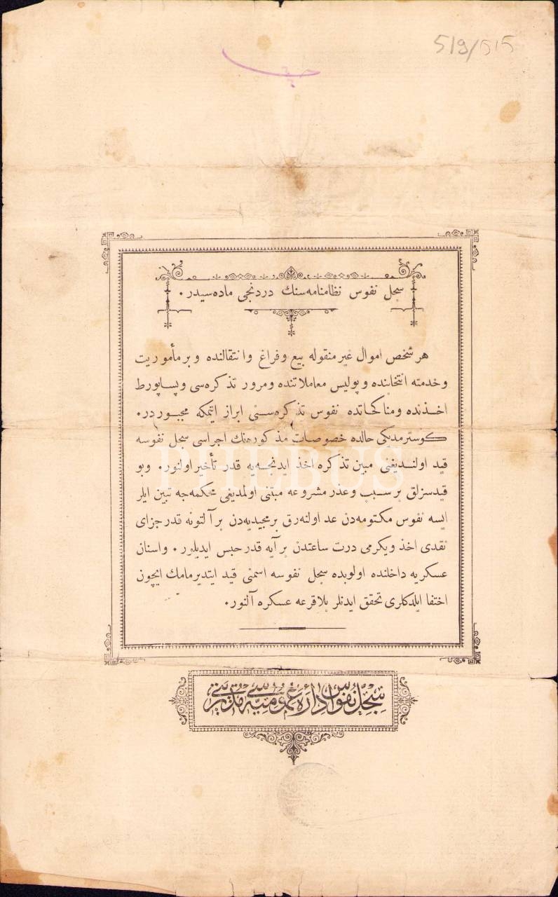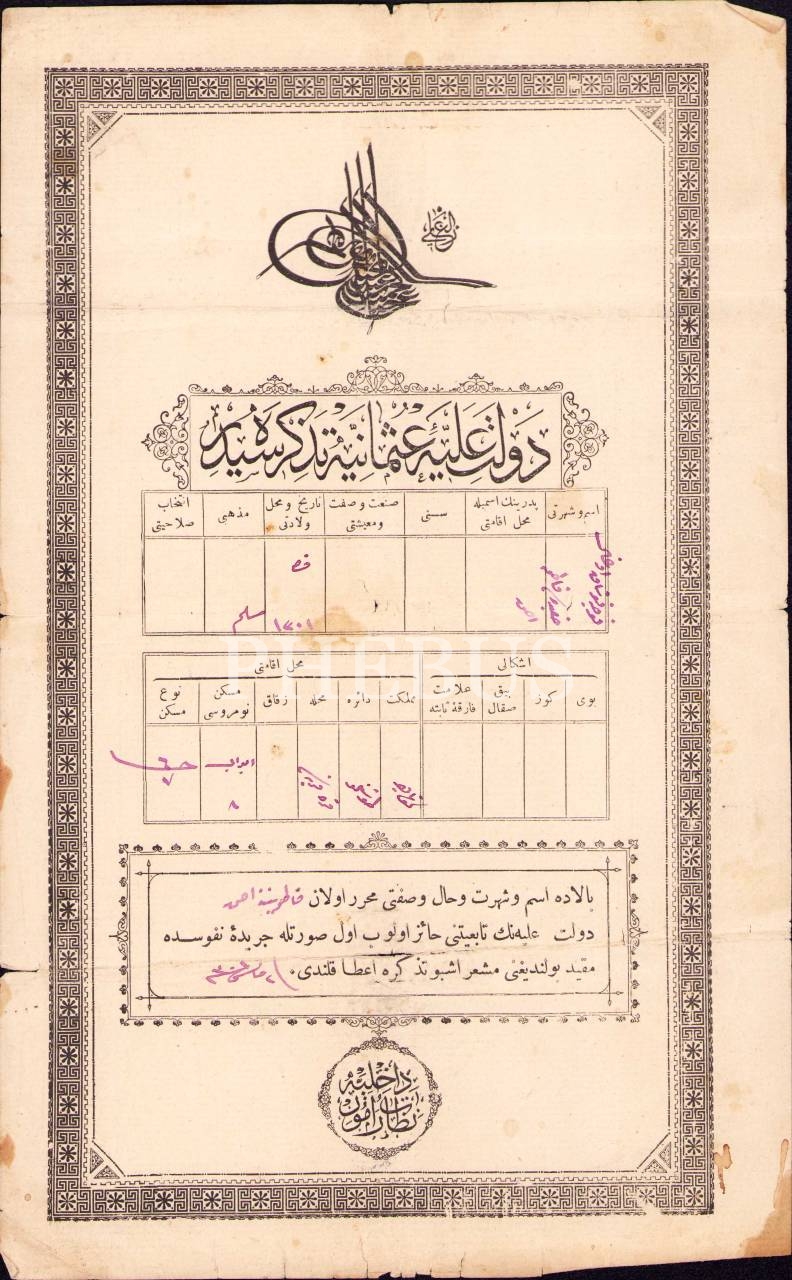 Osmanlıca 1301 tarihli nüfus tezkiresi, 18x29 cm, yıpranmış haliyle