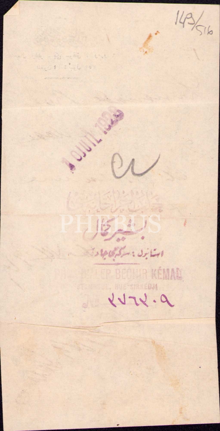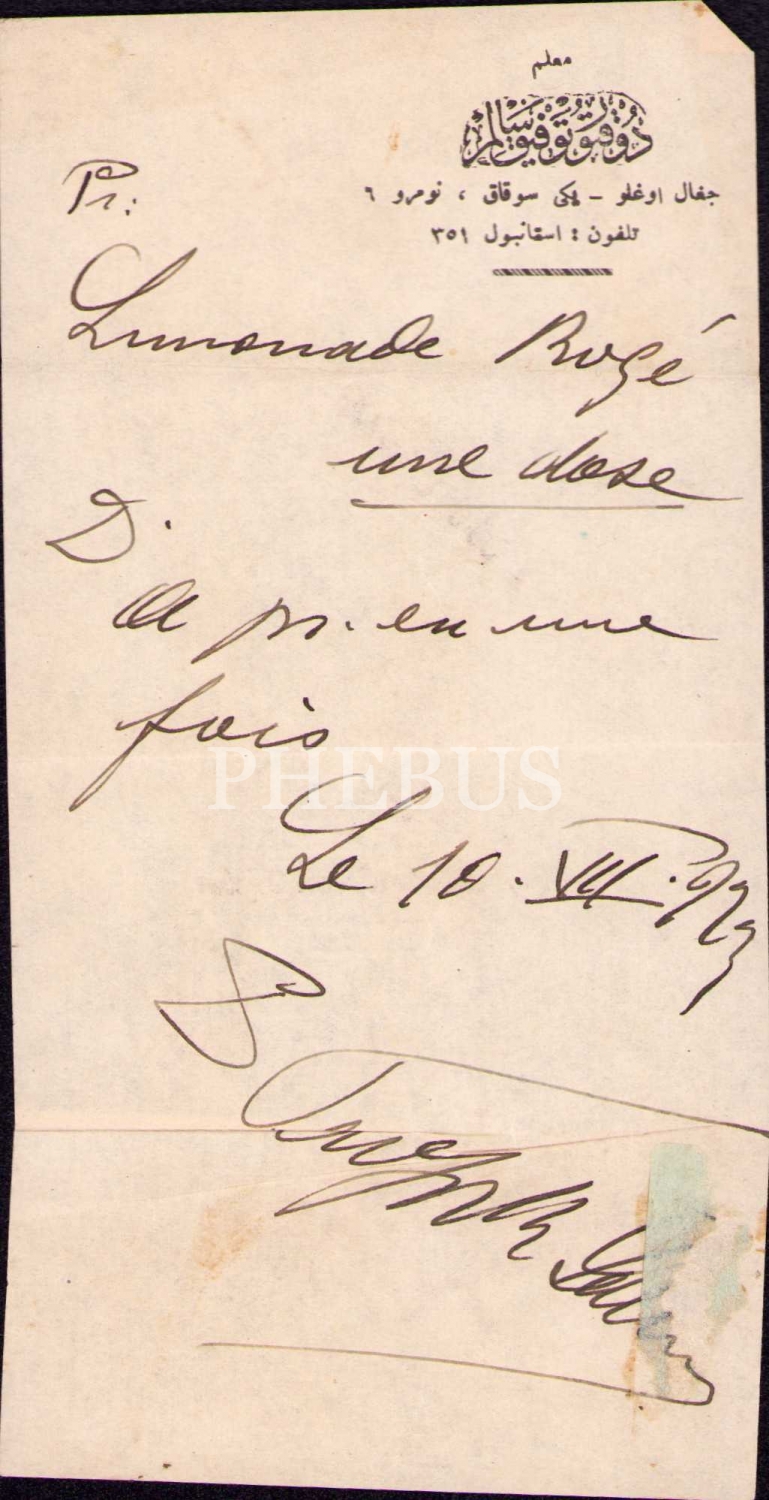 Osmanlıca Doktor Tevfik Salim antetli reçete, 8x17 cm