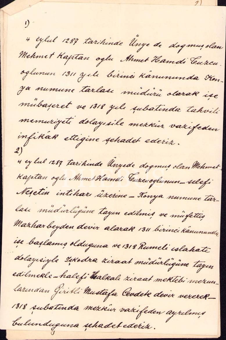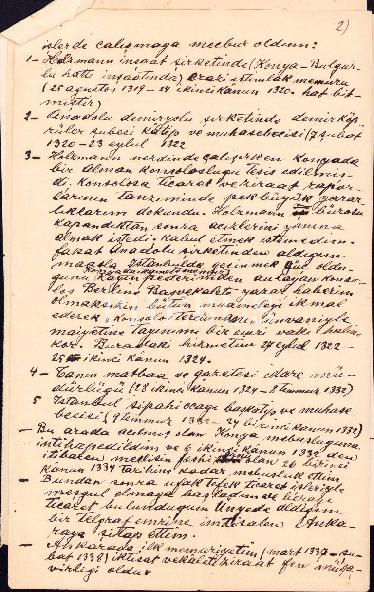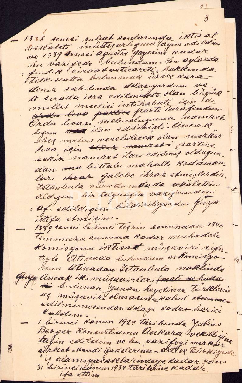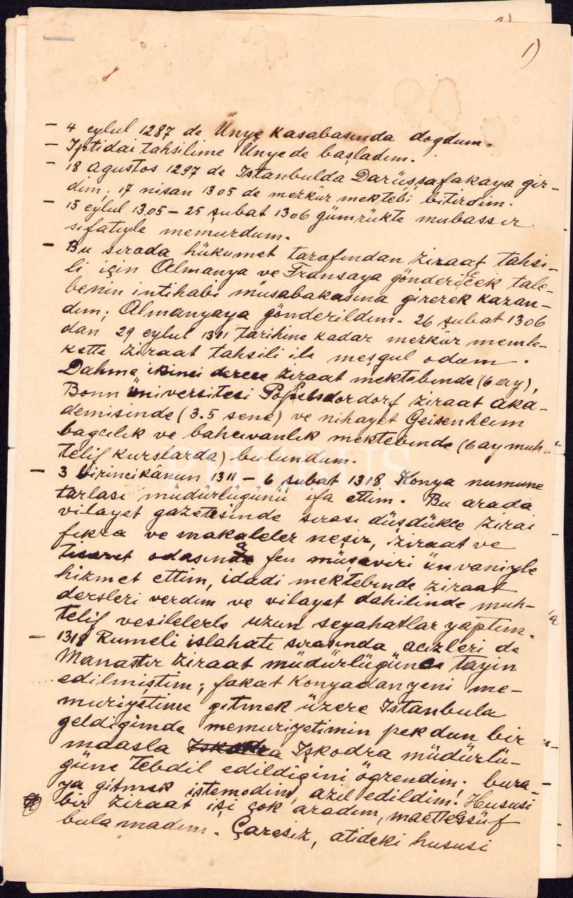 Ahmet Hamdi Tuzcuoğlu'na(?) dair otobiyografi-biyografi bilgileri içeren 4 sayfa, 21x33 cm, yorgun haliyle