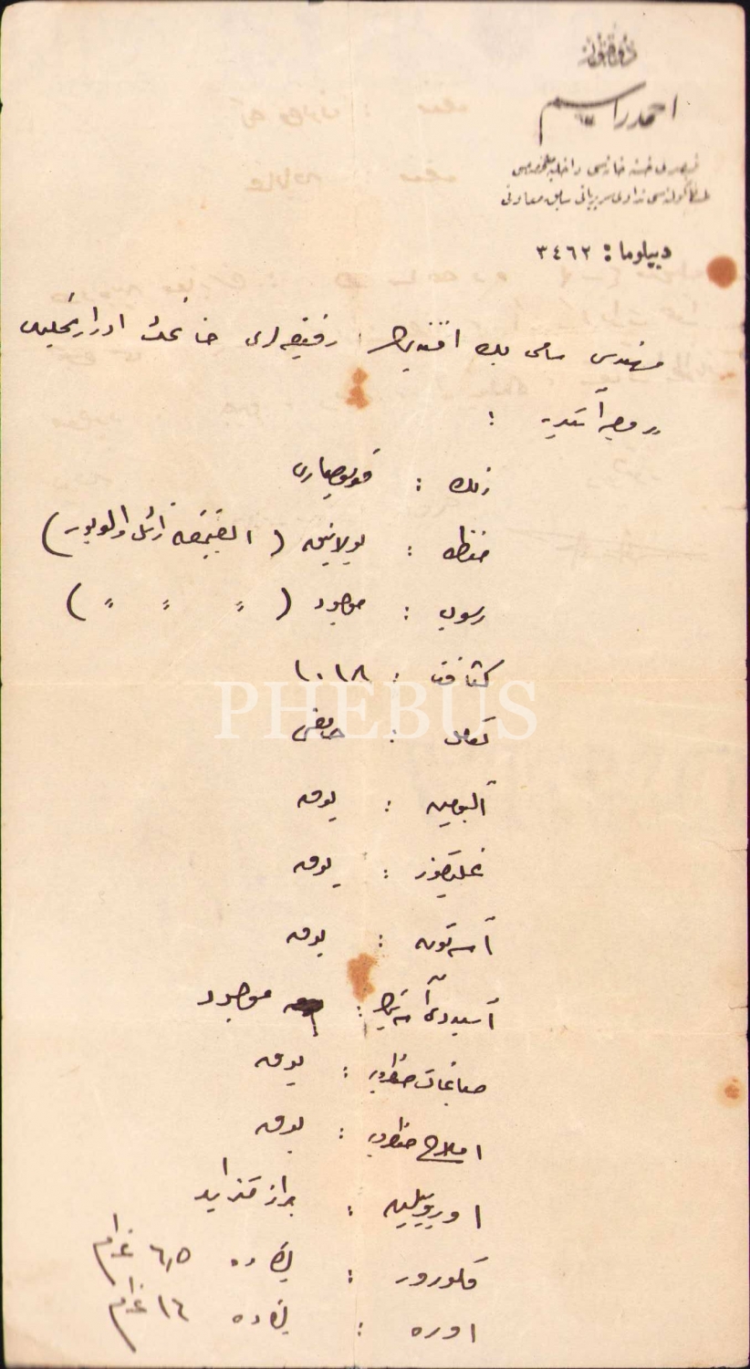 Osmanlıca Doktor Ahmed Rasim antetli idrar tahlili sonucu, 11x21 cm
