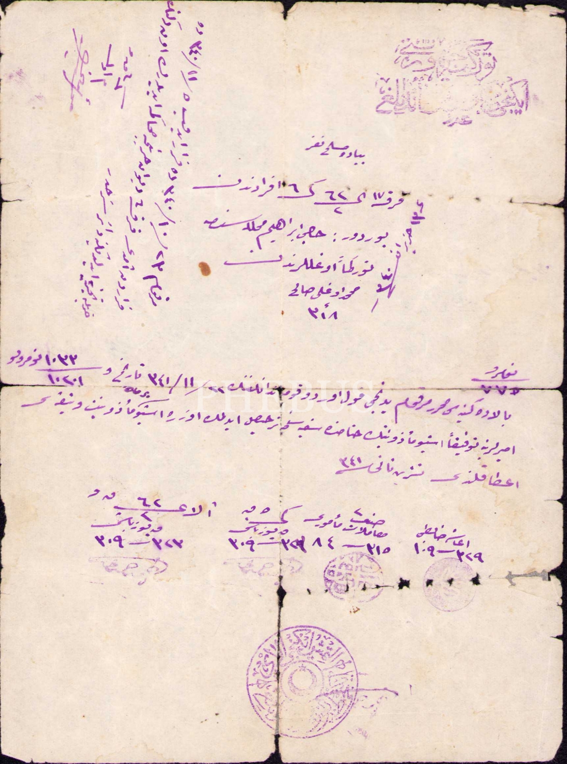 Türkiye Cumhuriyeti 2. Ordu Kumandanlığı antetli; 1318 doğumlu Türkmenoğullarından Mehmed oğlu Salih’e ait.