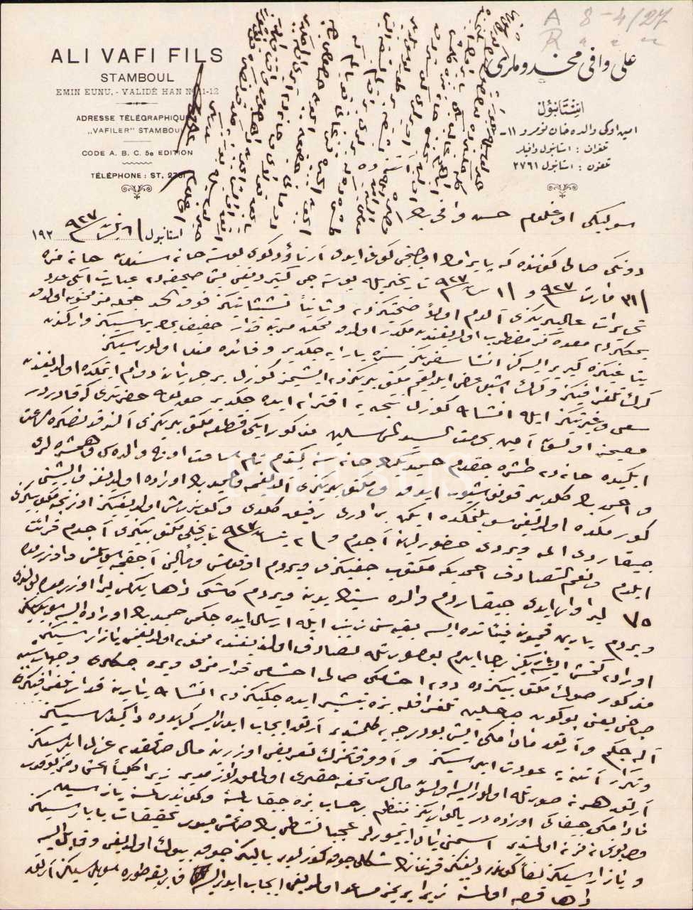Osmanlıca-Fransızca Ali Vafi Mahdumları antetli kâğıtta şahsi mektup, 1927 tarihli, 20x27 cm