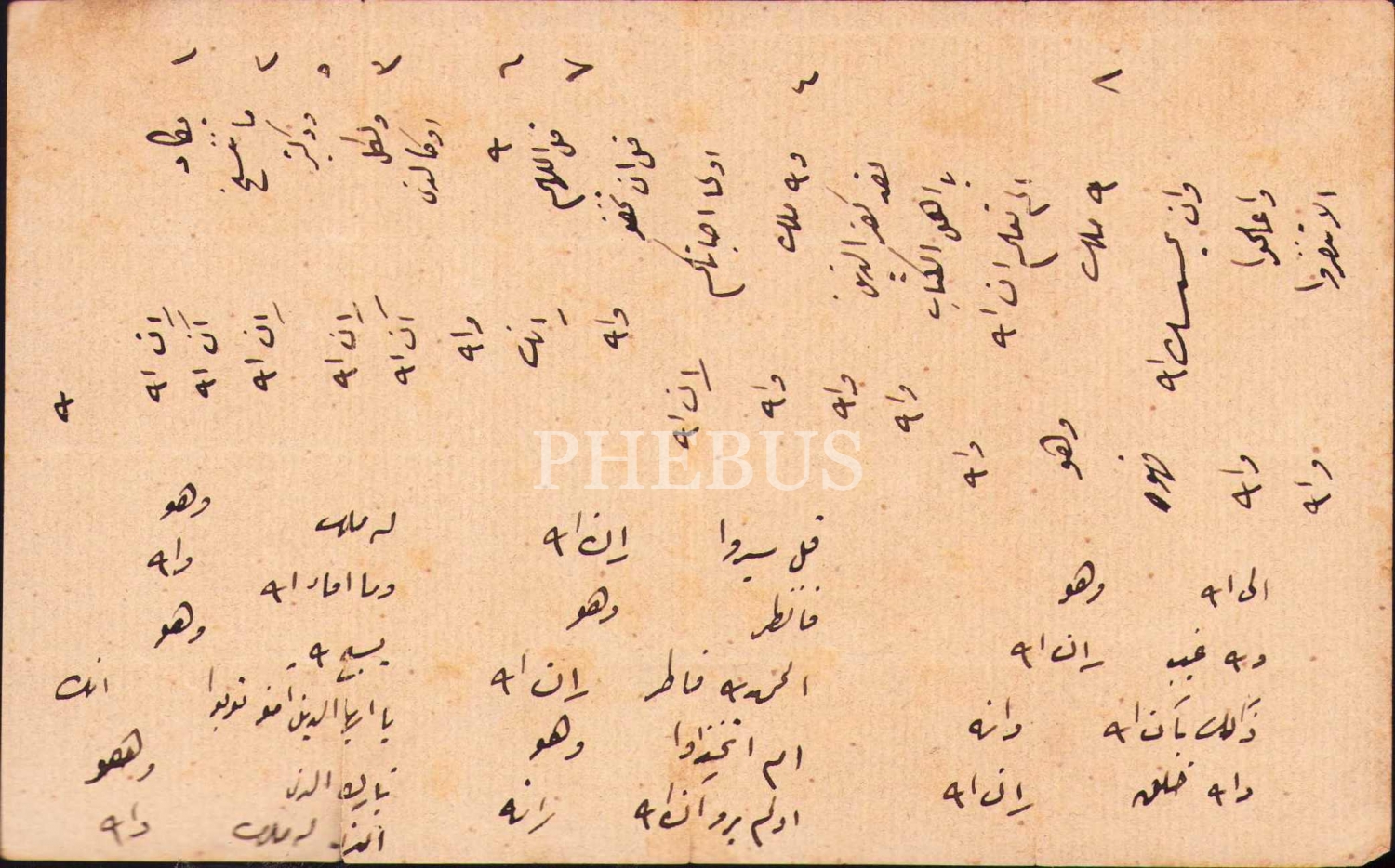 Ayet başlarının belirli bir tertibe göre sıralandığı sayfa, 11x18 cm, kenarları yırtık haliyle
