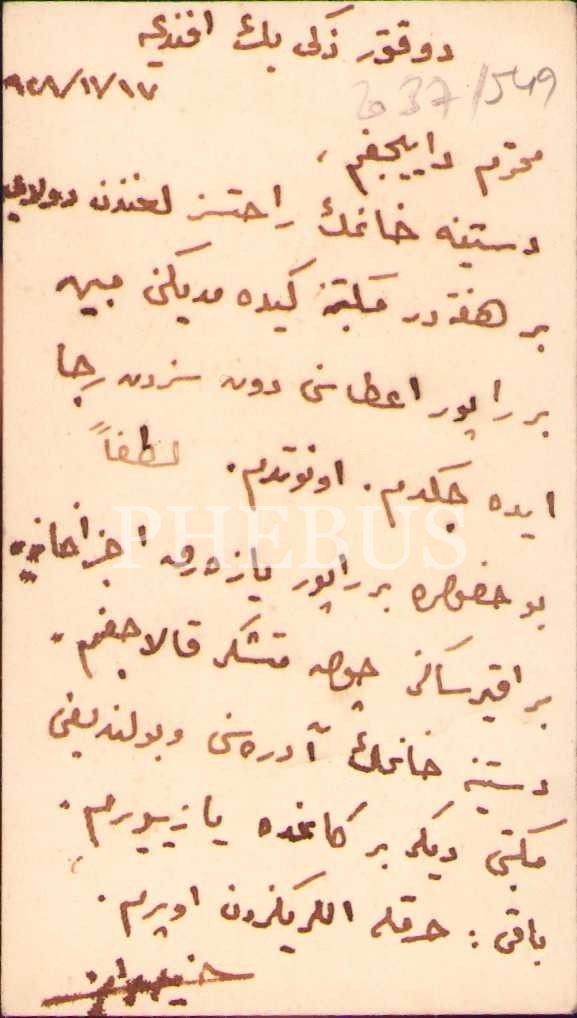 Osmanlıca diş hekimi kartviziti, arkası Osmanlıca yazılı, 1928 tarihli