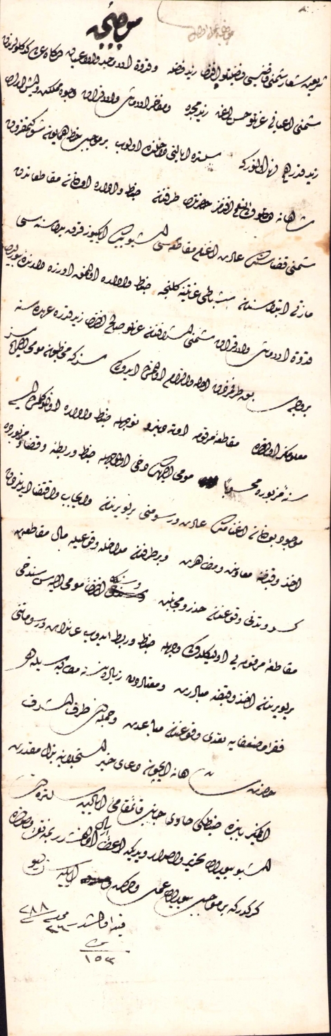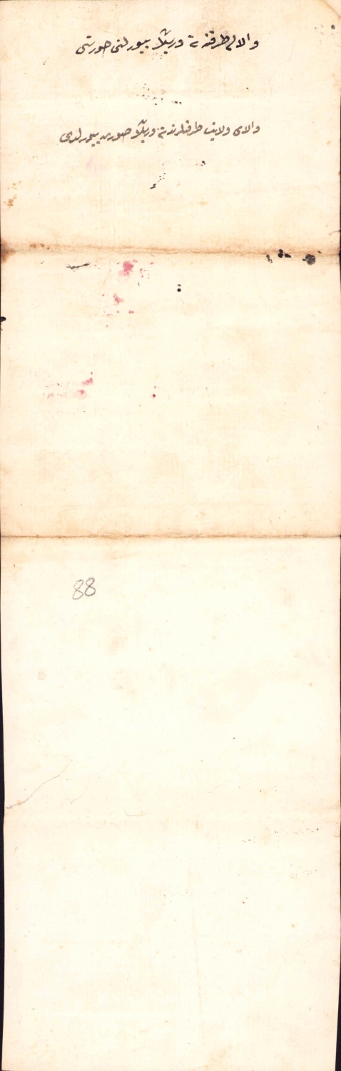 Osmanlı Vala-i Vilayetleri tarafına Şumnu kazası için Salih Efendiye verilen görevlendirme belgesi, 1288 tarihli, Osmanlıca 11x39cm