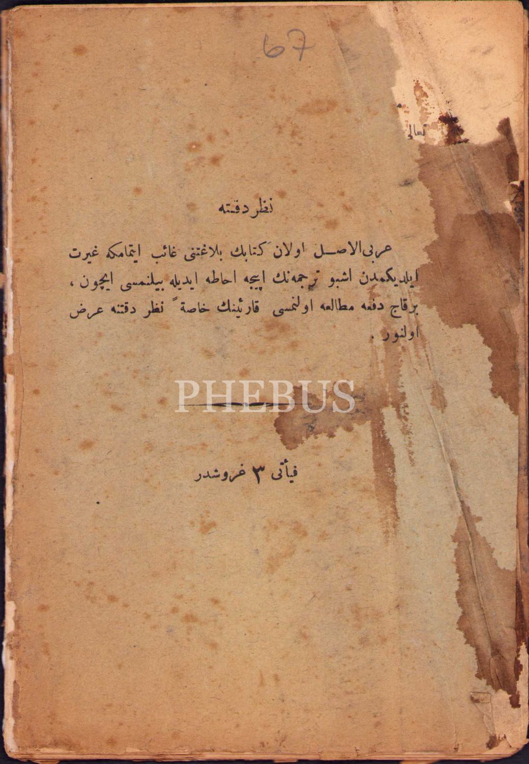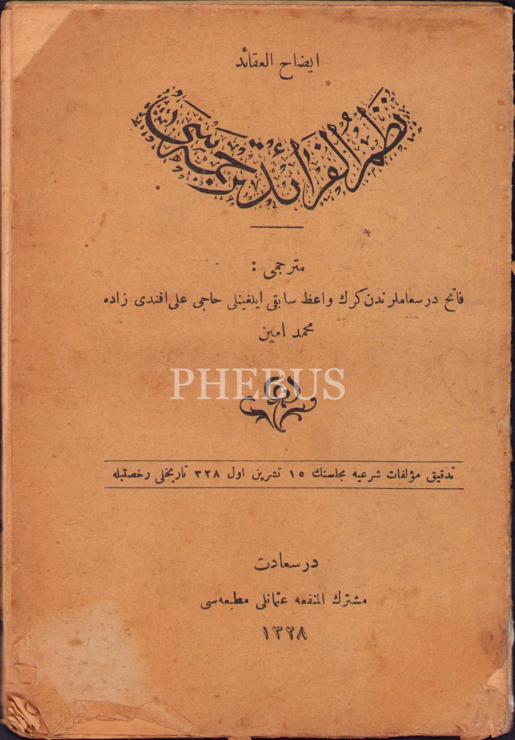 Osmanlıca Nazmu'l-Ferâid Tercümesi, Ilgınlı Hacı Ali Efendizâde Mehmed Emin, Müşterekü'l-Menfaa Osmanlı Matbaası, Dersaadet [İstanbul] 1328, 13x18 cm, ciltsiz ve sayfaları açılmamış haliyle