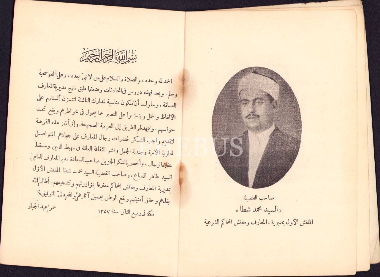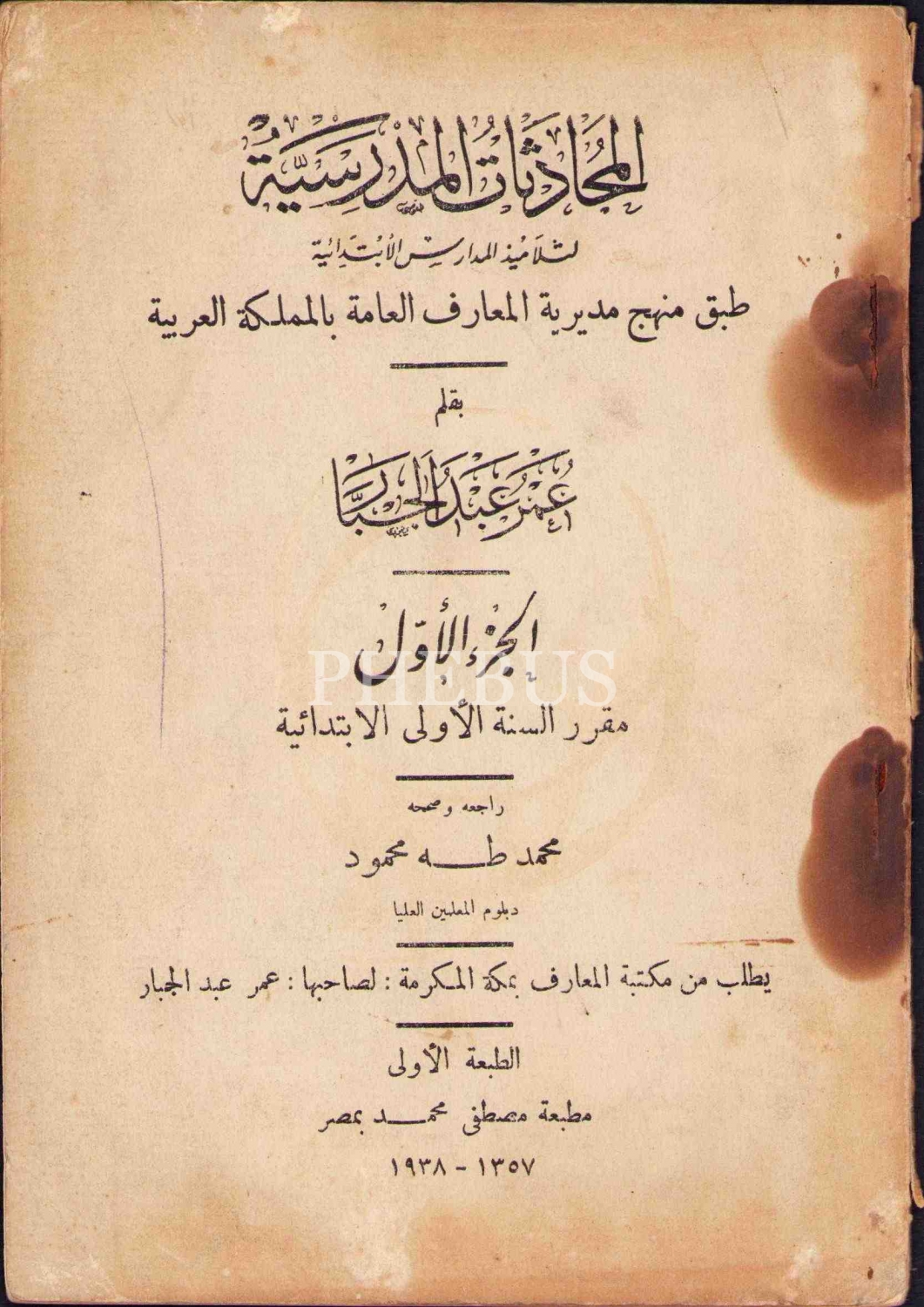 Arapça el-Muhâdesâtu'l-Medresiyye, Ömer Abdülcabbar, Mustafa Muhammed Matbaası, Mısır 1938, 50 s., 14x20 cm, kapağı yıpranmış haliyle