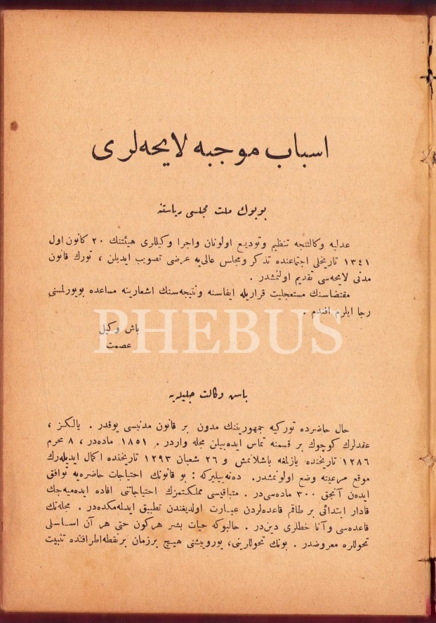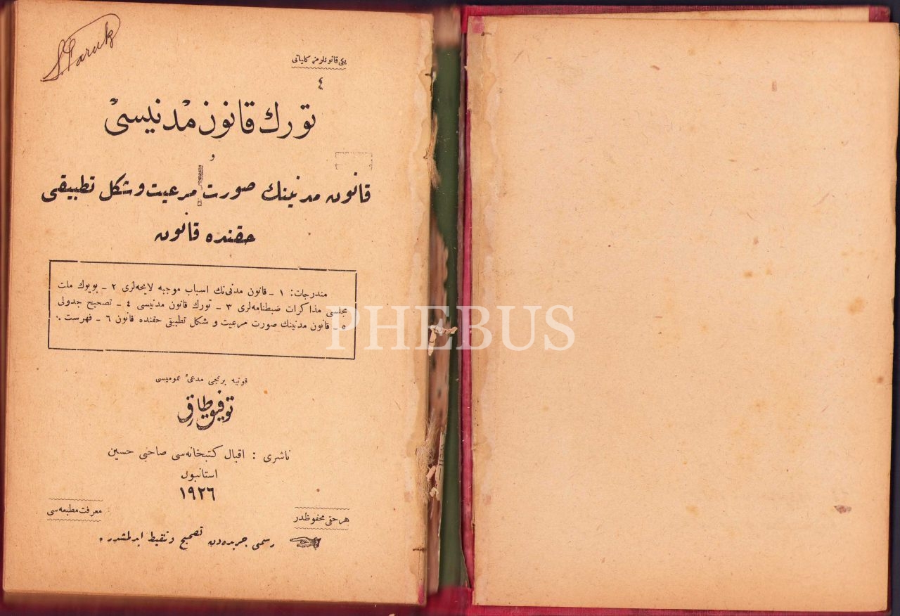 Osmanlıca Türk Kânûn-ı Medenîsi, Tevfik Tarık, Marifet Matbaası, İstanbul 1926, 320 s., 14x20 cm, sırtı haliyle, ÖZEGE No: 21455