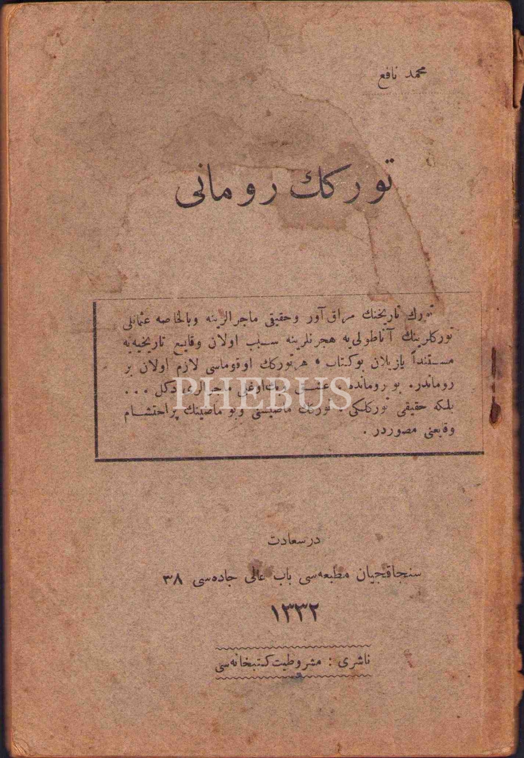 Osmanlıca Türkün Romanı, Mehmed Nafi, Sancakiyan Matbaası, Dersaadet [İstanbul] 1332, 120 s., 12x17 cm, kapağı yıpranmış haliyle, ÖZEGE No: 21932