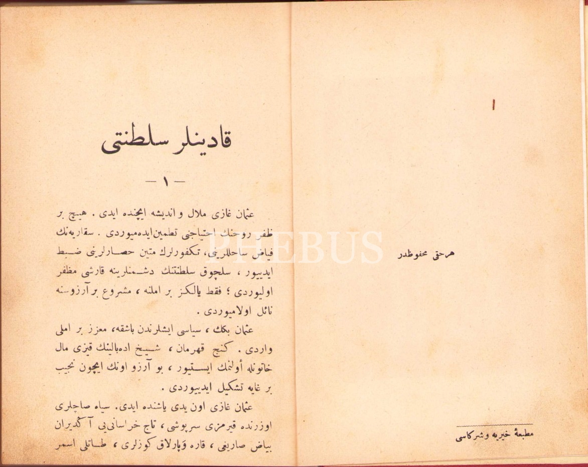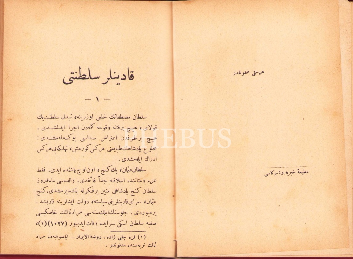 Osmanlıca Kadınlar Saltanatı [1. baskı], Ahmed Refik, Matbaa-i Hayriye ve Şürekası, İstanbul 1332, 152+128 s., 12x17 cm