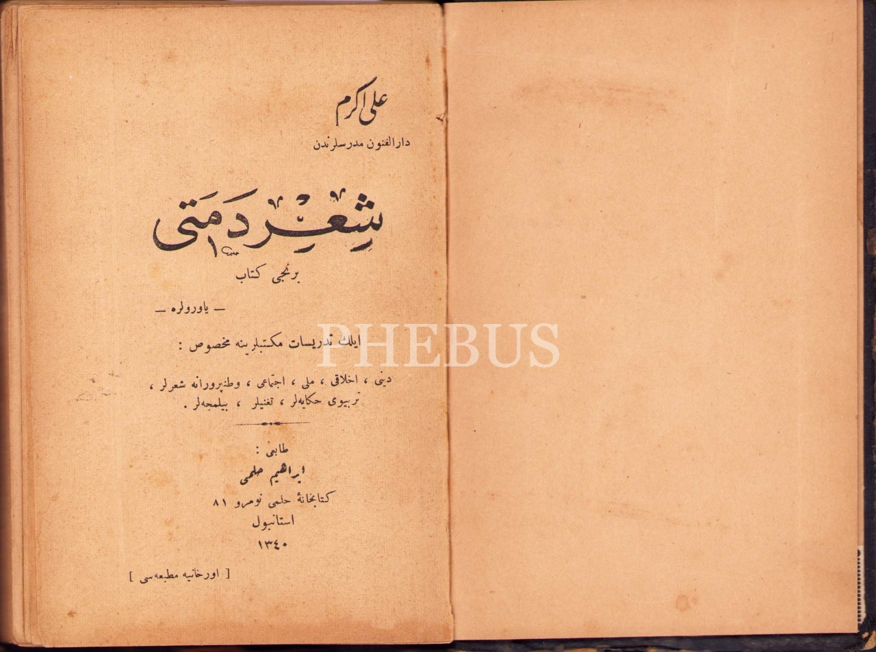 Osmanlıca Şiir Demeti, Ali Ekrem, Orhaniye Matbaası, İstanbul 1340, 191 s., 12x18 cm, cildi yıpranmış haliyle