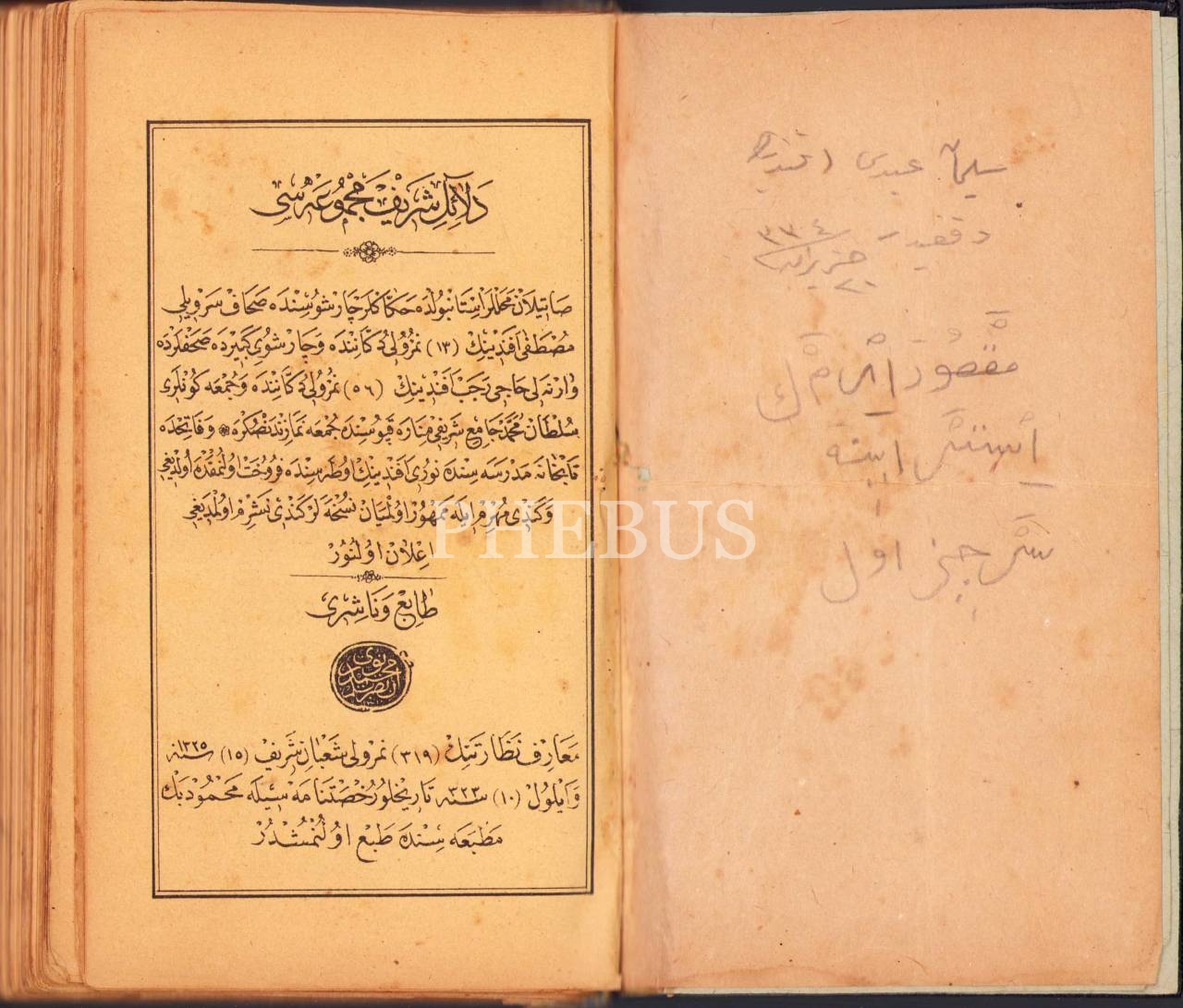 Osmanlıca derkenarlı Arapça Delâil-i Şerif Mecmûası, Mahmud Bey Matbaası, 11x19 cm