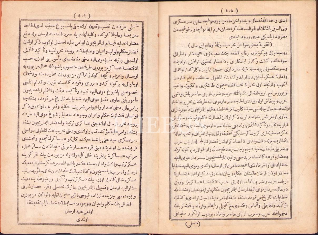 Osmanlıca Şânîzâde Târîhi - 1. Cilt, 1284, 409 s., 14x20 cm, sırtı yıpranmış ve ilk sayfası yırtık haliyle, ÖZEGE No: 18578