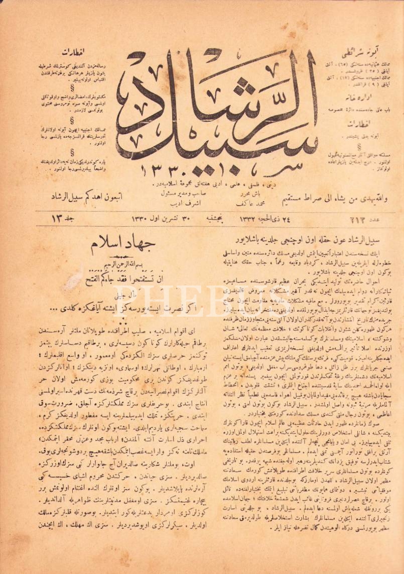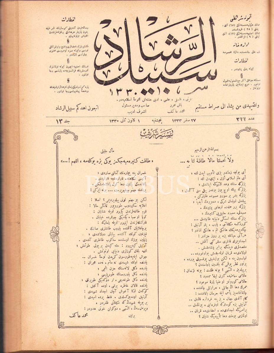 Osmanlıca Sebîlü'r-Reşâd Dergisi [313-338 arası sayılar], hicrî 1332-33, 210 s., 25x33 cm