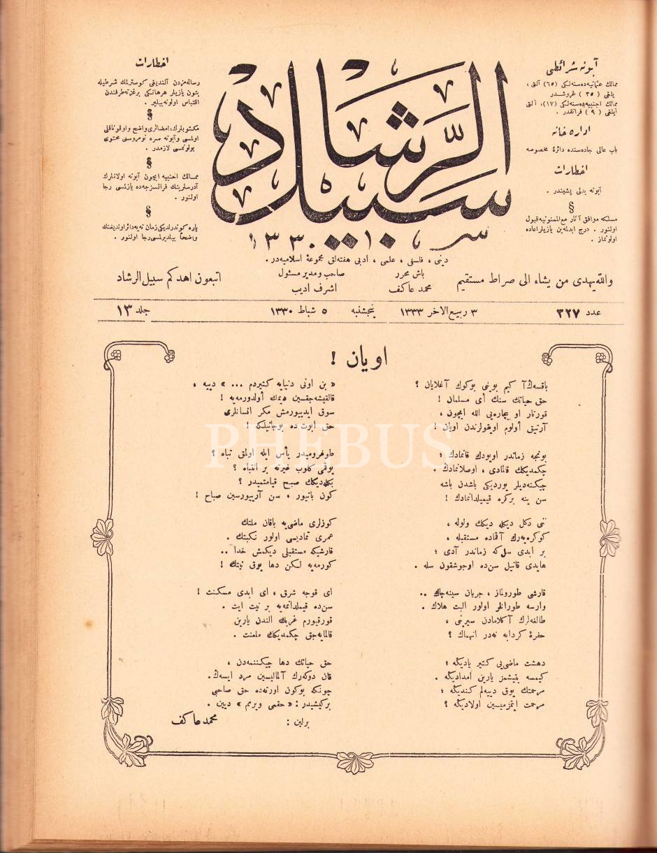 Mehmed Akif'in başyazarlığını yaptığı ve Eşref Edip tarafından yayımlanan dergi, "din, felsefe, edebiyat, hukuk ve ulumdan bâhis [bahseden] haftalık gazetedir". Ömer Rıza Doğrul, Said Halim Paşa, Elmalılı Hamdi Yazır, dergide yazıları yer alan yazarlardandır.