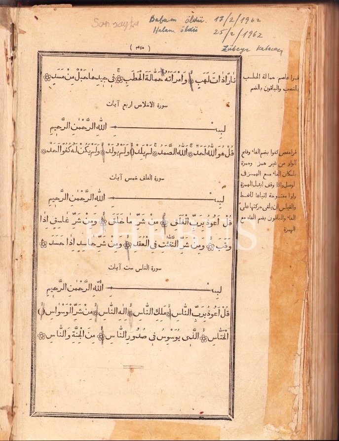 Kazan Baskı Kelâm-ı Şerîf [Kur'ân-ı Kerîm], Matbaa-i Hızâne, 1293, 20x30 cm, sayfaları yıpranmış haliyle