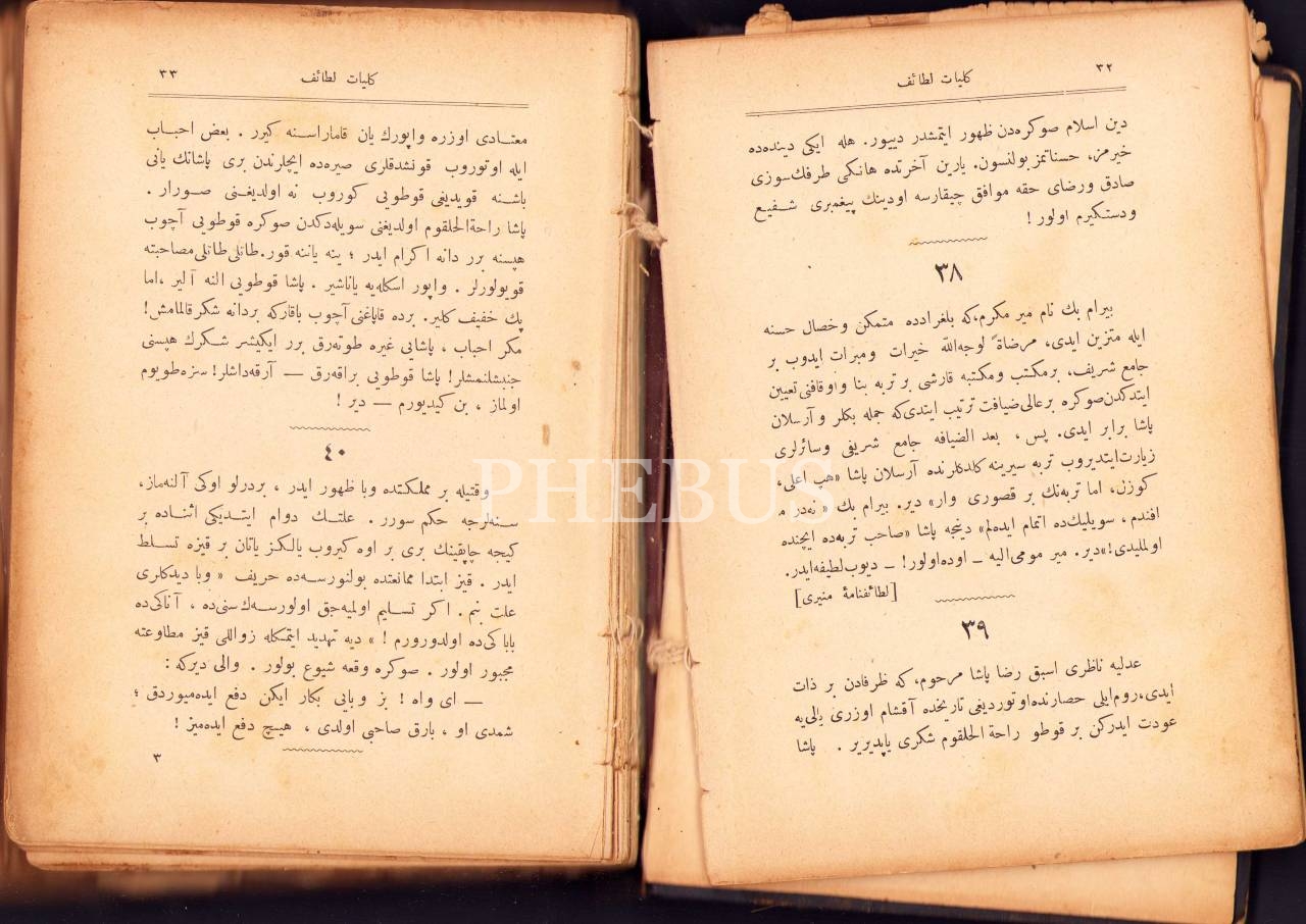 Osmanlıca Külliyât-ı Letâif [Latife/Fıkra Derlemesi], Faik Reşad, Sancakciyan Matbaası, İstanbul 1328, 638 s., 14x20 cm, epey yıpranmış ve sondan eksik haliyle, ÖZEGE NO: 11500