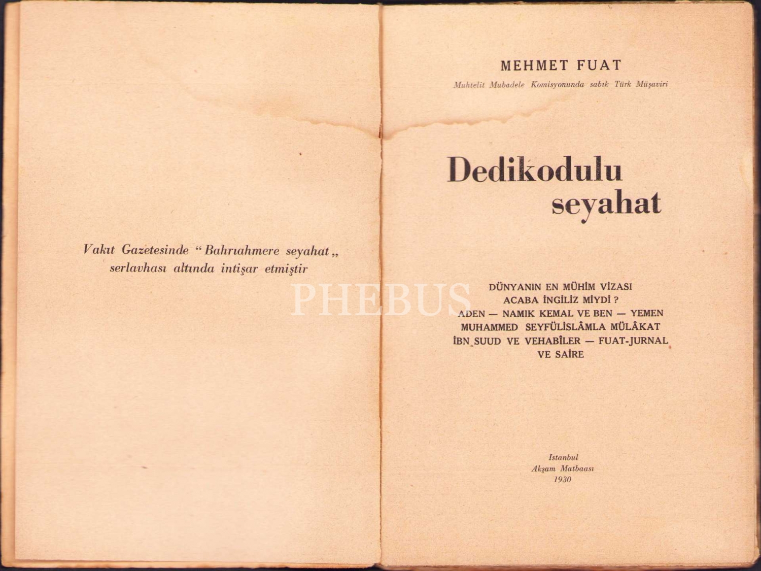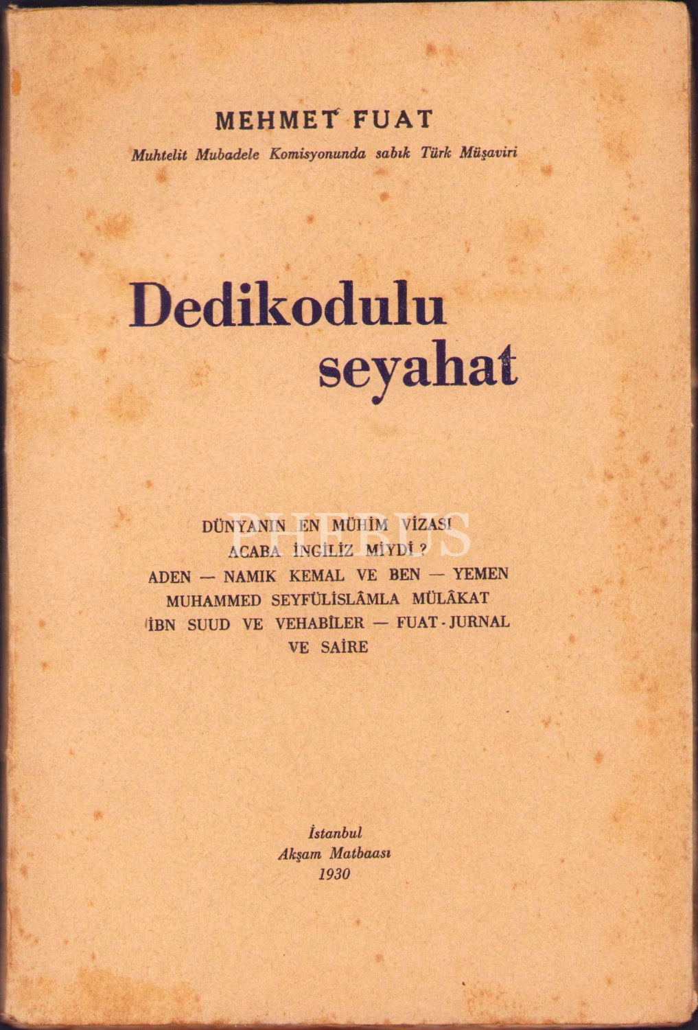 Dedikodulu Seyahat, Mehmet Fuat, İlk Baskı, Akşam Matbaası, 95 sayfa, 1930, sayfaları açılmamış haliyle, 13x19 cm