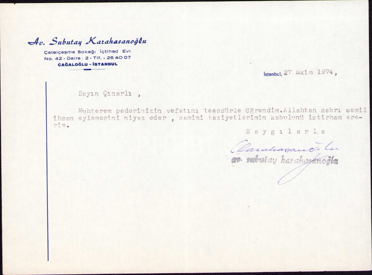 Hisarlar Akımının Kurucusu Yazar Mehmet Çınarlı'ya Gönderilmiş Muhtelif Mektuplar, 25 adet, muhtelif ebatlarda.